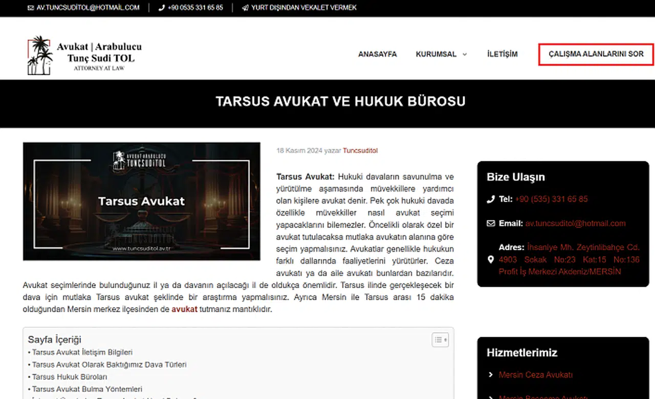 Tarsus avukatı, yasal konularda uzmanlaşmış, Tarsus’ta yaşayan bireylerin ve kurumların hukuki ihtiyaçlarına cevap veren profesyonellerdir. Bu uzmanlar, hukuk sistemini etkin bir şekilde kullanarak müvekkillerinin haklarını savunur ve yasal süreçlerde rehberlik eder. Tarsus avukatları, Mersin ceza avukatı hukuku, medeni hukuk, ticaret hukuku gibi çeşitli alanlarda hizmet sunar.