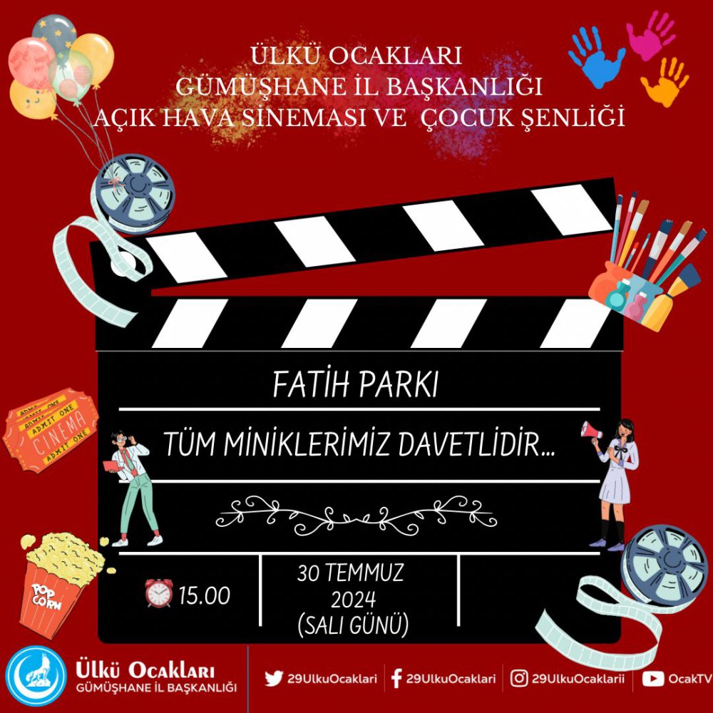 Gümüşhane Ülkü Ocakları İl Başkanlığı, çocuklar için açık hava sineması ve çocuk şenliği etkinliği düzenleyecek.