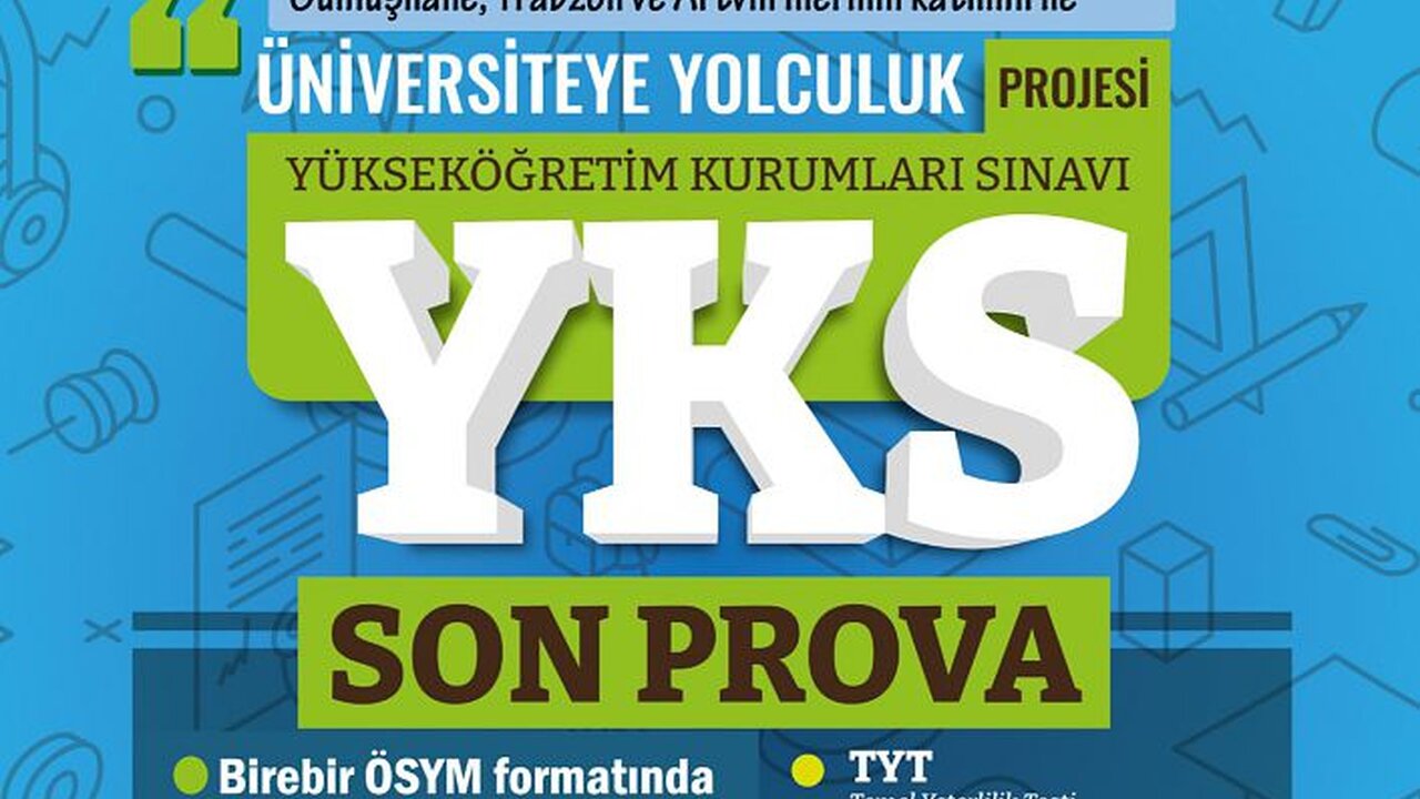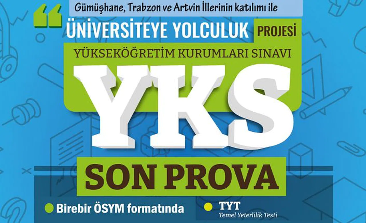 Trabzon İl Milli Eğitim Müdürlüğü koordinasyonunda, Gümüşhane Üniversitesi, Gümüşhane İl Milli Eğitim Müdürlüğü ile yürütülen ve bu yıl 8.si yapılacak olan "Üniversiteye Yolculuk Projesi" kapsamında 14 Mayıs 2022 Cumartesi günü üniversiteye girmeyi planlayan gençleri gerçek sınav psikolojisine hazırlamak amacıyla YKS ile aynı formatta deneme sınavı yapılacak.