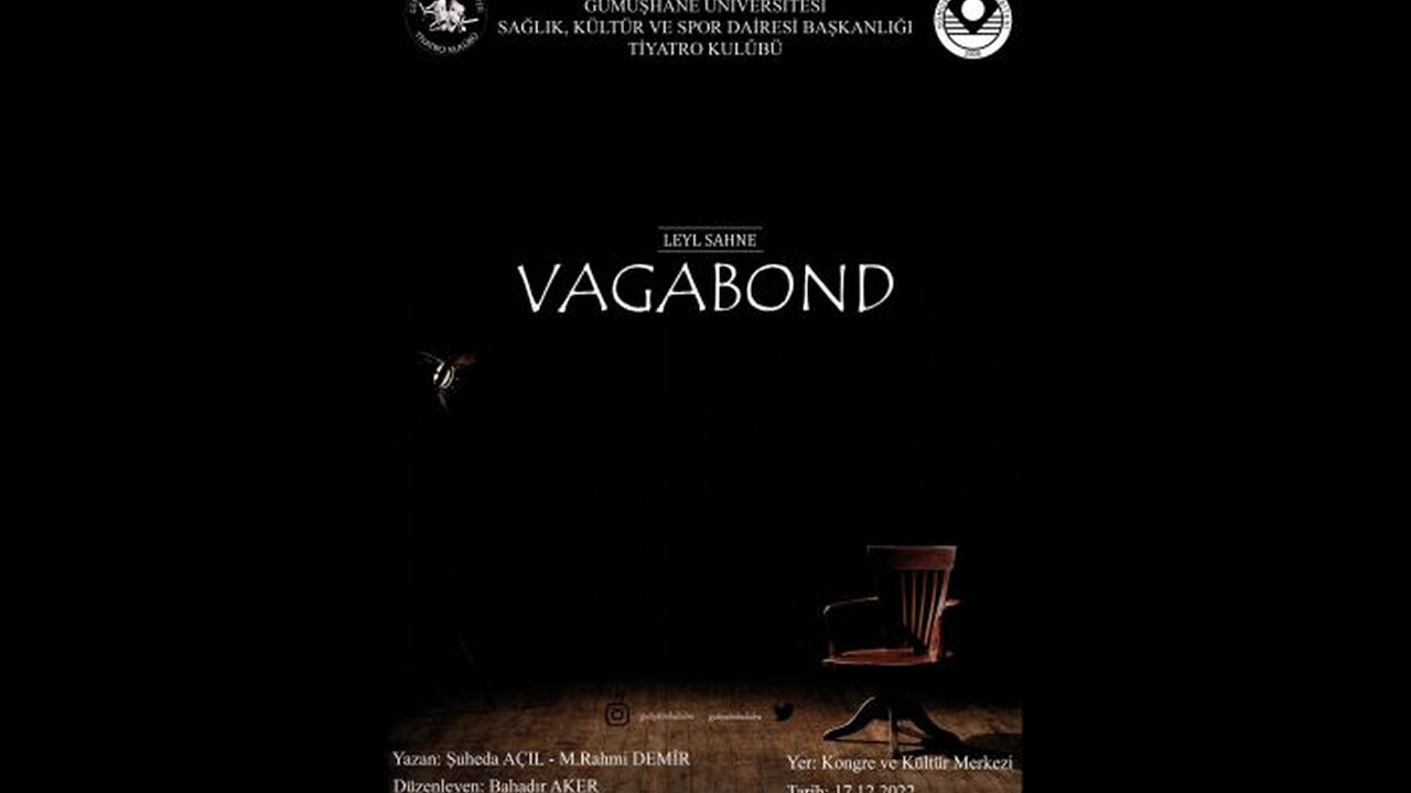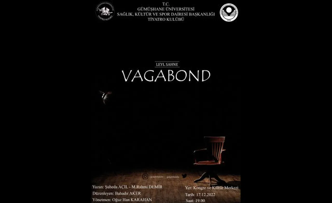 Bireylerin toplum ve kendi ile çatışmasından doğan durumu dramatik bir şekilde ele alan “Vagabond” adlı tiyatro oyunu Gümüşhane Üniversitesi Kongre ve Kültür Merkezinde 17 Aralık Cumartesi günü saat 19.00’da sahnelenecek. Oyunun davetiyeleri Gümüşhane Üniversitesi Sosyal Tesisler önünde kulüp öğrencilerinden alınabiliyor.