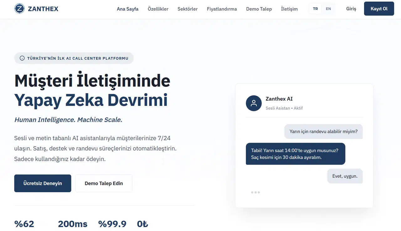 ZANTHEX, müşteri iletişimini pasif bir destek hattı olmaktan çıkarır; aktif, satış yapan ve işlem gerçekleştiren bir yapıya dönüştürür. İşletmeler daha az maliyetle daha fazla müşteriye ulaşır, daha yüksek kalite sunar, daha tutarlı bir marka deneyimi oluşturur.