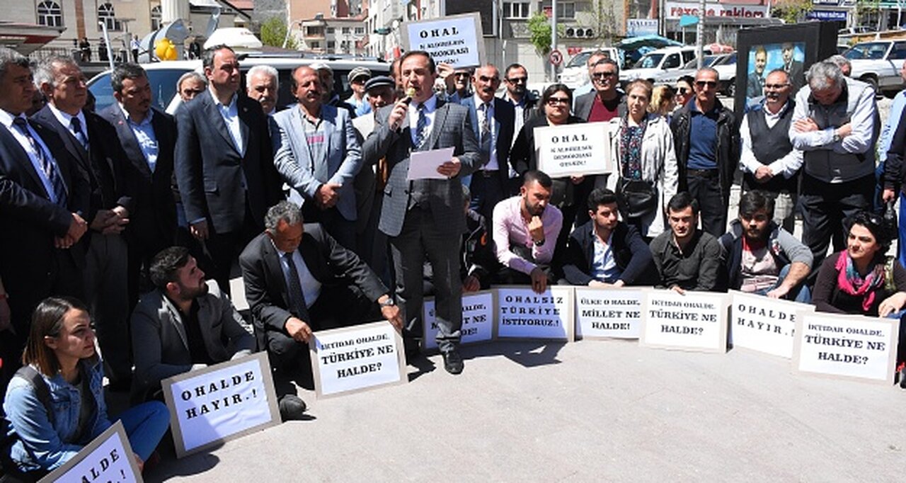 15 Temmuz Zafer Meydanı'nda bir araya gelen partililer “O halde hayır”, “İktidar Ohal'de, Türkiye ne halde?”, “OHAL kaldırılsın demokrasi gelsin”, “OHALSİZ Türkiye istiyoruz”, “Ülke o halde Millet ne halde!” yazılı dövizlerle oturma eylemi yaptı.