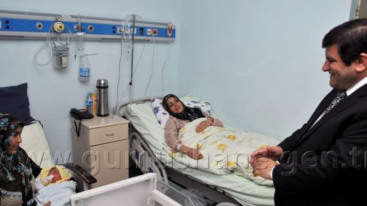 Vali Mayda ve beraberindekiler daha sonra Van’da meydana gelen depremin ardından Gümüşhane’deki yakınlarının yanına gelen bir ailenin yeni doğan bebeğini de ziyaret etti. Doğum servisinde gerçekleşen ziyarette depremden kurtularak, Gümüşhane’ye gelen Bağlan ailesinin 3.çocuğu olan 1 günlük Ezgi Bağlan’ı ziyaret eden Vali Mayda, ailenin hatırını da sorarak bir ihtiyaçlarının olup olmadığını öğrendi. Çocuğun kız olduğunu öğrenen Vali Mayda, babaannesinin kucağında ki minik Ezgi’ye oyuncak bebek hediye etti.