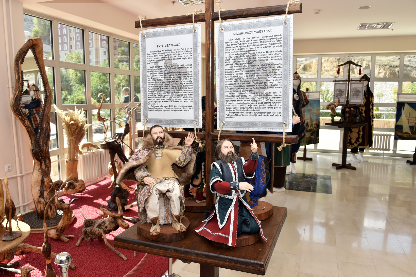 Selçuklular ve Danişmendiler dönemine ait başlıklar, kitre heykeller ve dönemi anlatan menkıbe tasviri yağlı boya tablolarının yer aldığı sergi Gümüşhane Kültür Merkezi fuaye alanında açıldı.