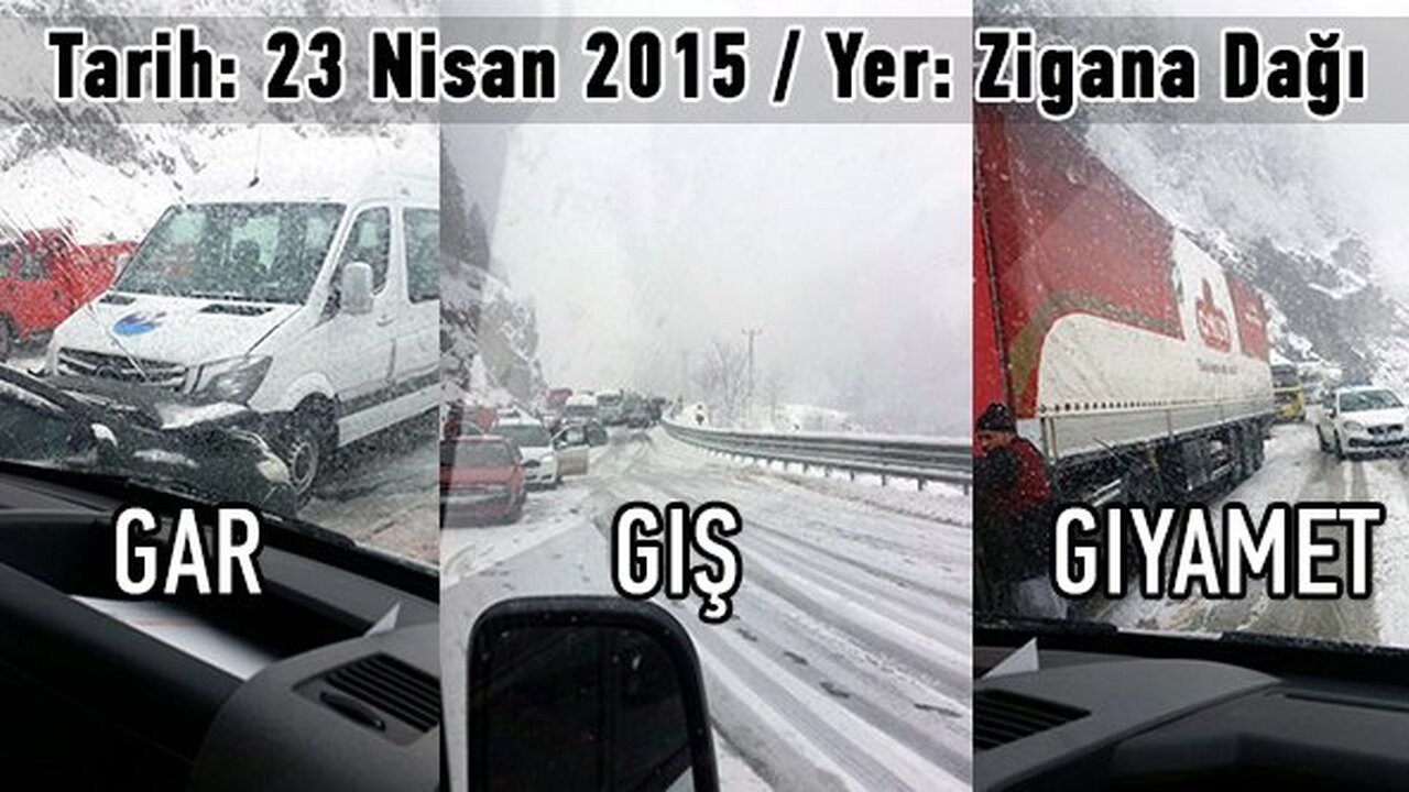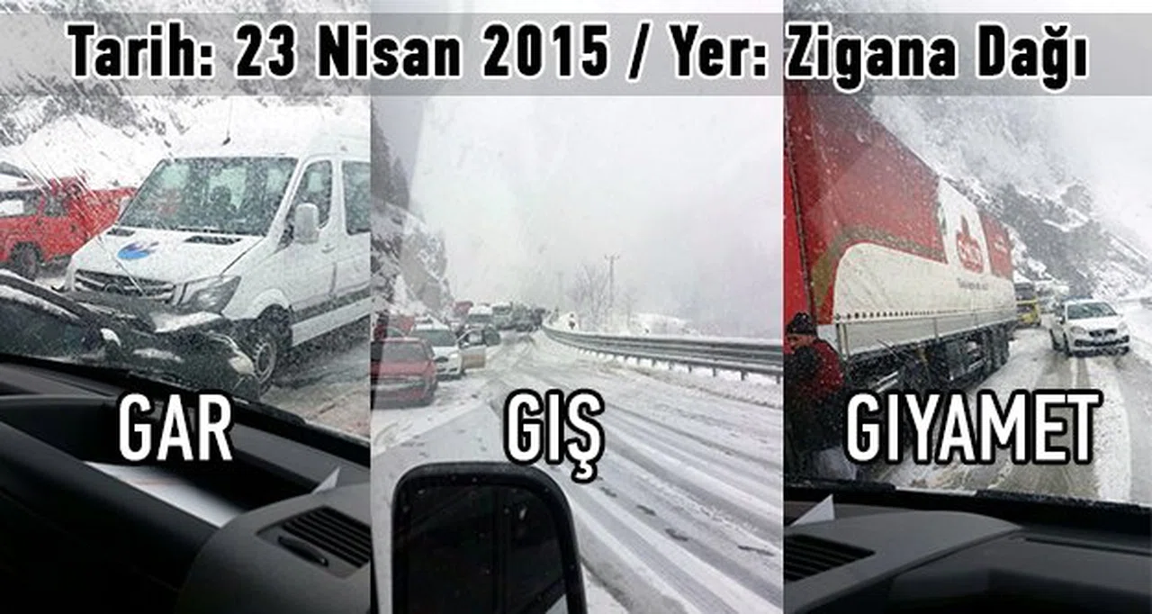 Yöresel tabirler, “gar, gış, gıyamet” olarak adlandırılan 3G’nin yeniden geri döndüğü Gümüşhane’de dün gece yarısından sonra başlayan kar yağışı aralıklı olarak devam ederken, yağışın ardından Zigana geçidinde sürücüler zor anlar yaşamaya başladı.