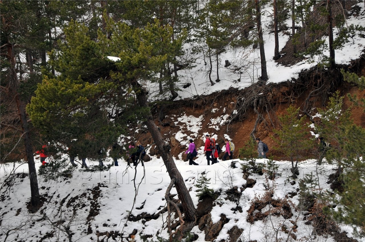 Torul ilçesine bağlı Harmancık köyünde bin 580 metre rakımdan yürüyüşe başlayan Gümüşhane ve Trabzonlu sporcular dik bir rampadan Godanas mahallesine ulaştı ve bin 700 metreden sonra orman içinde zaman zaman karlı zeminde yürüyüş gerçekleştirdi. Burada bir süre dinlenen sporcular daha sonra Yarlar mevkiinde orman yolundan Tufaniye yaylasına oradan da bin 470 metre rakımdaki Bezdop mahallesine ulaşarak yürüyüşü tamamladı.