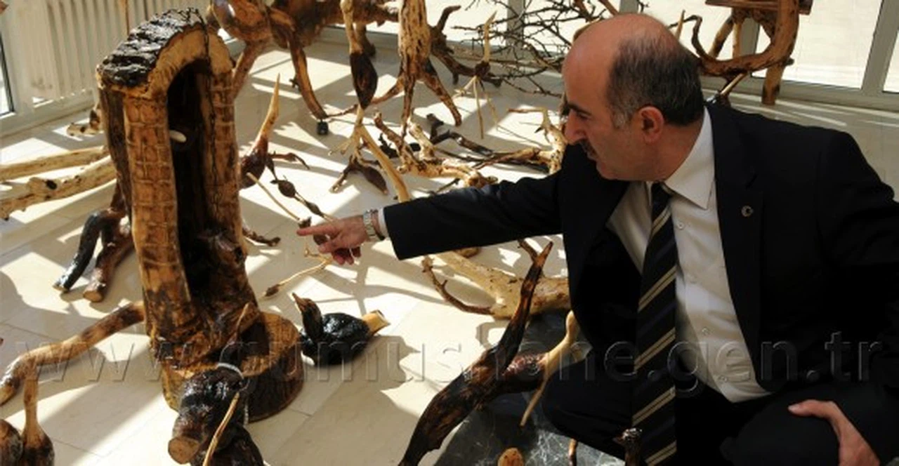 Eserlerin geçtiğimiz aylarda Ankara’da yapılan Gümüşhane Günleri etkinliklerinde ilk kez sergilendiğini, buradaki eserlerin İzmirli bir sanatsever vatandaş tarafından alınmasının ardından Kara’dan Gümüşhane turizmi için yeni eserler istediğini anımsatan Vali Mayda, “Öğretmenimiz ağaç köklerine hangi hayvana benziyorsa ona yönelik bir çalışma yapmış, süslemiş ve verniklemiş. Gerekli incelemeler yapıldıktan sonra bunların ticari olarak pazarlama yerine uygun bir şekilde Kültür ve Turizm Müdürlüğümüze devredilmesini istedik. Sembolik bir fiyatla hayırsever bir vatandaşımız bu kökleri alarak Kültür ve Turizm Müdürlüğüne teslim etti. Bu kökleri hem Gümüşhanelilere, hem dışardan gelen vatandaşlarımıza hem de öğrencilerimize sergileyeceğiz.” diye konuştu.