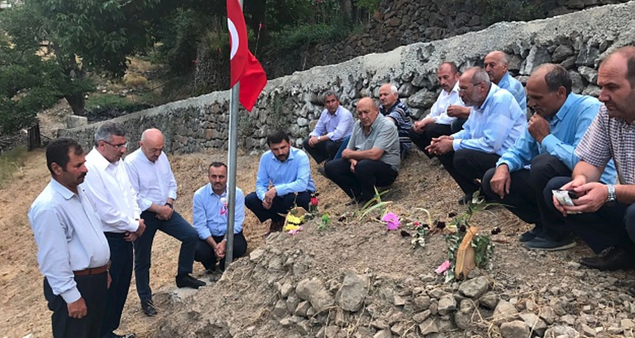 Daha sonra şehit öğretmenin aile kabristanındaki mezarına giden heyet, burada okunan Kur’an-ı Kerim’in ardından başta Necmettin öğretmen olmak üzere tüm şehitlerin ruhuna dua etti.