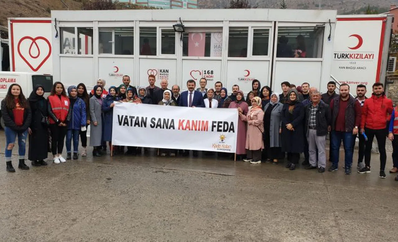 AK Parti Gümüşhane İl Başkanlığı, Merkez İlçe Başkanlığı, İl Kadın Kolları Başkanlığı, İl Gençlik Kolları Başkanlığı ve Üniversite teşkilatından oluşan AK Parti heyeti, İl Başkanlığının organize ettiği “Vatan Sana Kanım Feda” etkinliği ile Kızılay haftasında kan verdi.