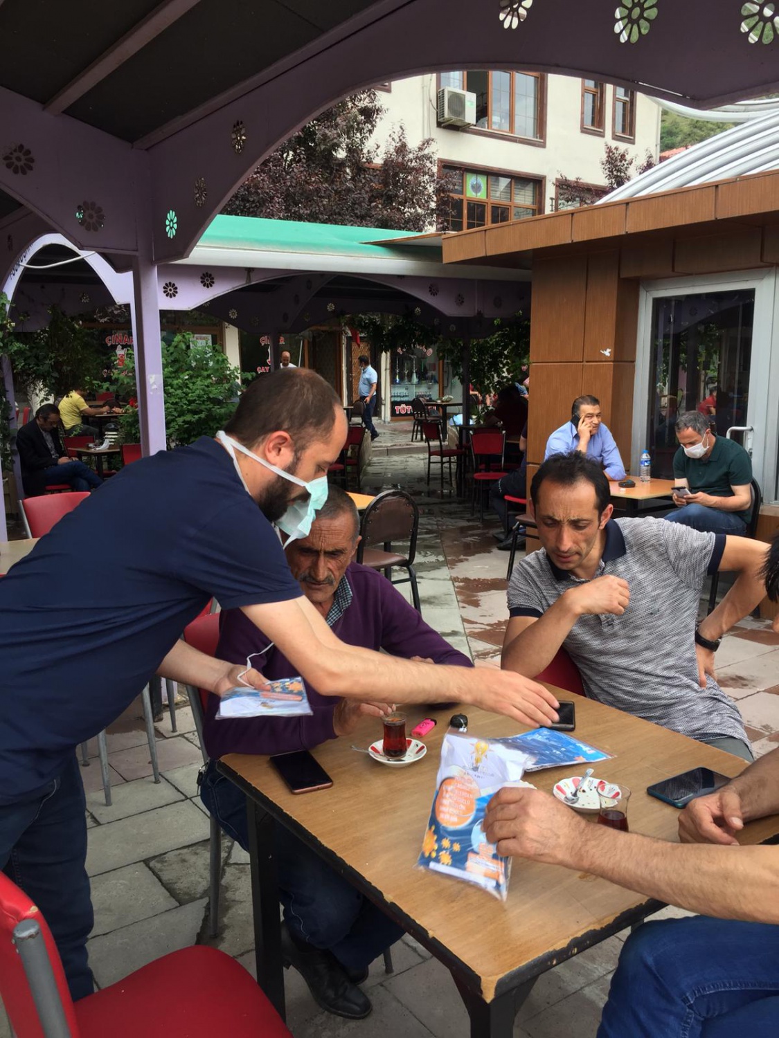 AK Parti Gümüşhane İl Başkanlığı, yeni tip koronavirüs (Covid-19) salgını tedbirleri kapsamında vatandaşlara ücretsiz maske dağıttı.