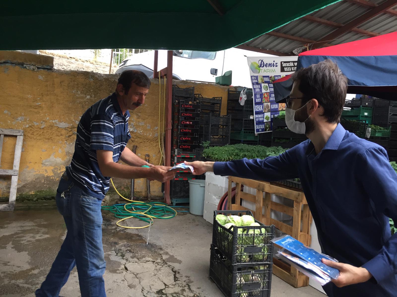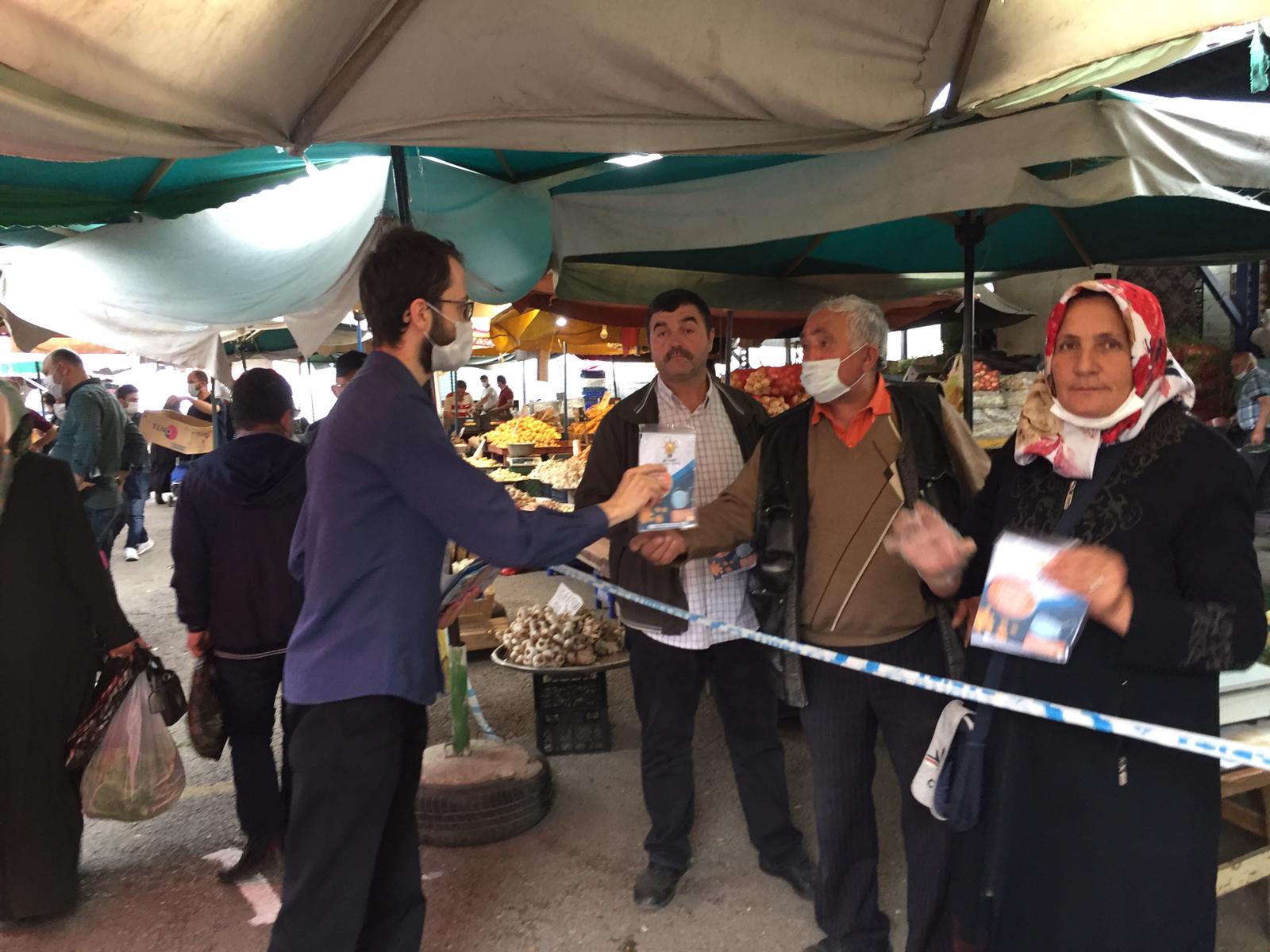 AK Parti İl Başkanı Av. Celalettin Köse tarafından hazırlatılan 5 bin adet maske ile Sağlık Bakanlığının açıkladığı koronavirüs riskine karşı 14 kuralın yer aldığı broşürler Gençlik Kolları Başkanı Uğur Ülker ve Gençlik kolları üyeleri tarafından vatandaşlara dağıtıldı.