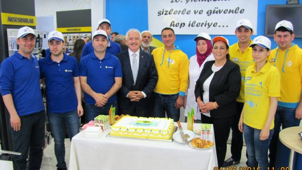 Hediye takdiminden sonra müşteriler ve çalışanlarının hep birlikte pasta kestiği kutlamaya, Gümüşhane iş dünyasından geniş bir katılım olurken ayrıca tüm müşterilere 20.yıl şerefine promosyon ürünler hediye edildi.