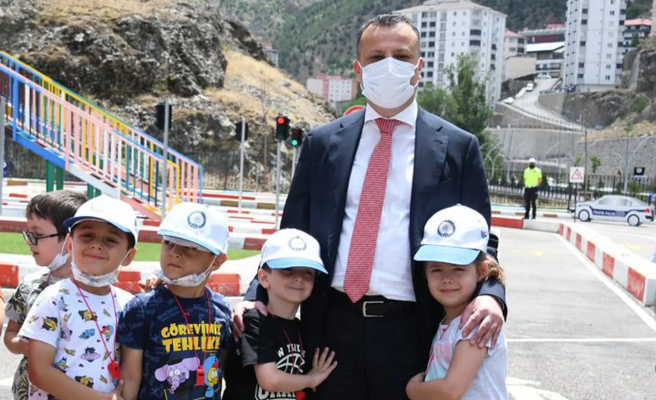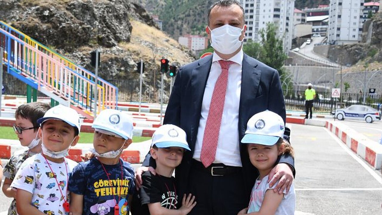 Yeni Şehir Stadyumu yanında İçişleri Bakanı Süleyman Soylu'nun trafik güvenliği açısından farkındalık oluşturma ve insan odaklı trafik vizyonu çerçevesinde Gümüşhane Valiliği tarafından yapılan Çocuk Trafik Eğitim Parkında çocuklarla bir araya gelen Vali Taşbilek, görevlilerin verdiği trafik eğitimini çocuklarla birlikte takip etti.