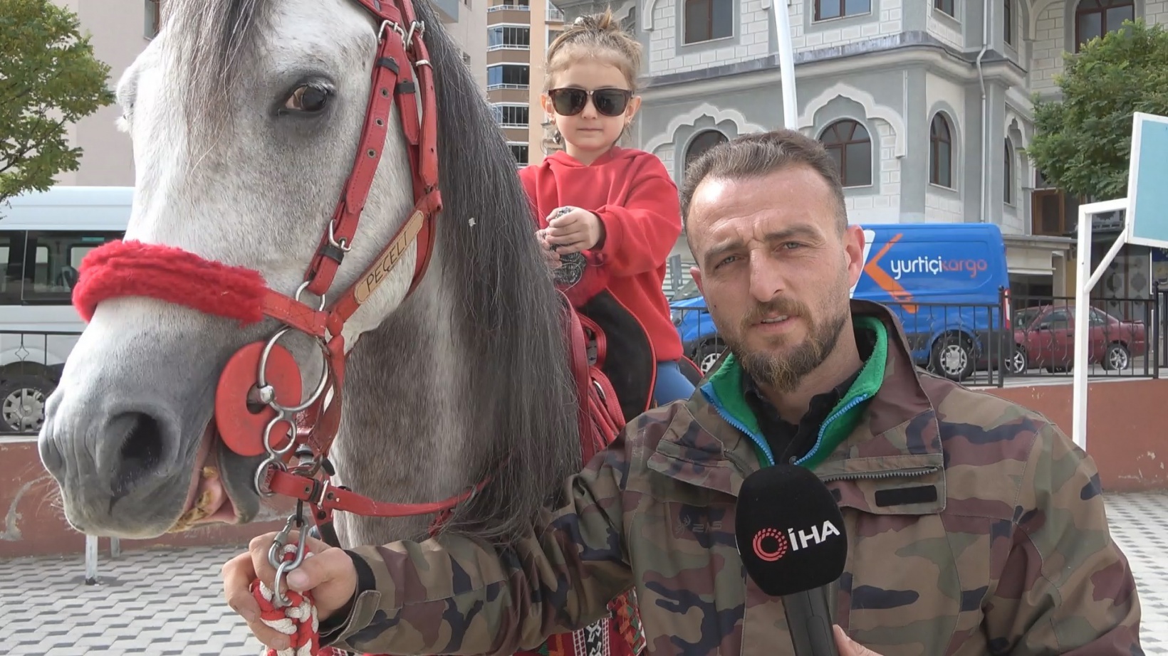 Minik öğrencilerin atları görünce çok mutlu olduğunu ifade eden Şehit Murat Akçay Anaokulu öğretmeni Özlem Yılmaz Cömert, “Şu anda okulumuzun bahçesine 2 tane at getirdik ve çocuklarımız atlara biniyorlar. Biz okulumuzda haftanın çocuğu projesini yürütüyoruz her hafta bir çocuğumuz başkan oluyor sınıfta ve haftanın bir gününde hayvan tanıtımı yapıyor. Bugün de sıra Amine Canlı’daydı babasının atları olduğu için okula atlar getirdiler. Çocuklardan çok ben de çok heyecanlandım. Hepimiz çok mutluyuz ve çok memnunuz zaten bugünü iple çektik” diye konuştu.