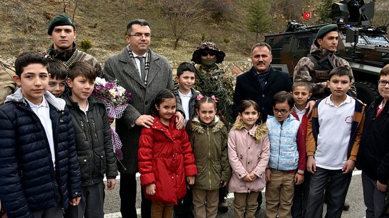 Düzenlenen törende çocuklar yanlarında getirdikleri mektupları, şiirleri, resimleri ve Türk Bayrağı'nı Afrin'e gönderilmek üzere İl Jandarma Komutanı Albay Cezayir Danışan'a teslim etti.