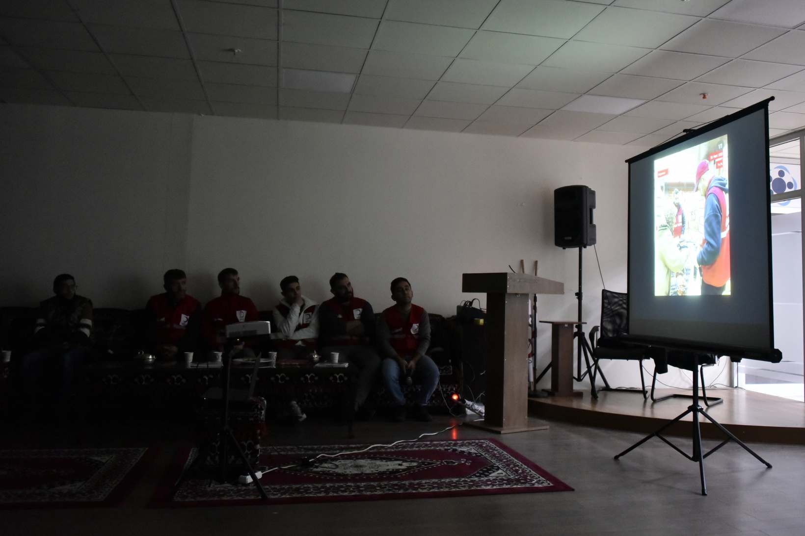 Depremin yıldönümünde Belediye Başkanlığı binasının 5.katında bulunan sosyal tesislerde düzenlenen ve Kızılay Gümüşhane Şubesi Toplumsal Güçlendirme Uzmanı Ali Kömürcü’nün sunumuyla gerçekleştirilen programda ilk olarak depremin 2.gününden itibaren sahada olan Gümüşhane Kızılay ekibinin faaliyetleriyle ilgili video gösterisi gönüllülerin o günleri yeniden yaşamasına ve gözyaşlarına neden oldu.