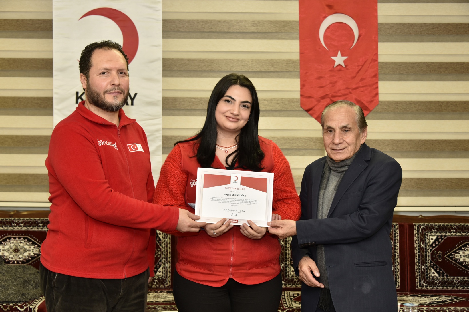 Bölgeye giden gönüllülerin anılarını “Soğuk cehennemi yaşadık”, “Çaresizliği orada gördük”, “Din, dil, ırk ayrımı yapmadan vicdanı öğrendim”, “Orada gönüllülere Allah özel bir güç verdi” sözleriyle paylaştığı ve duygusal anların yaşandığı programda daha sonra gönüllülere Türk Kızılay Genel Başkanı Prof.Dr. Fatma Meriç Yılmaz'ın imzaladığı teşekkür belgeleri takdim edildi.