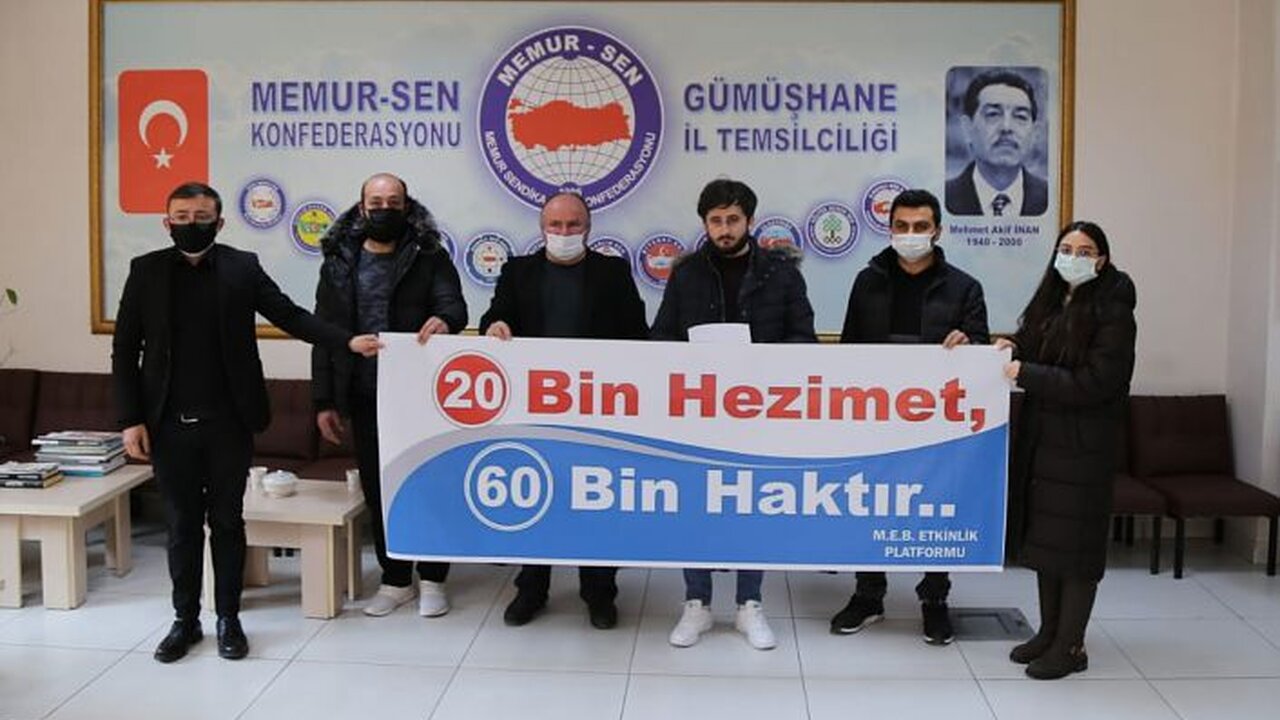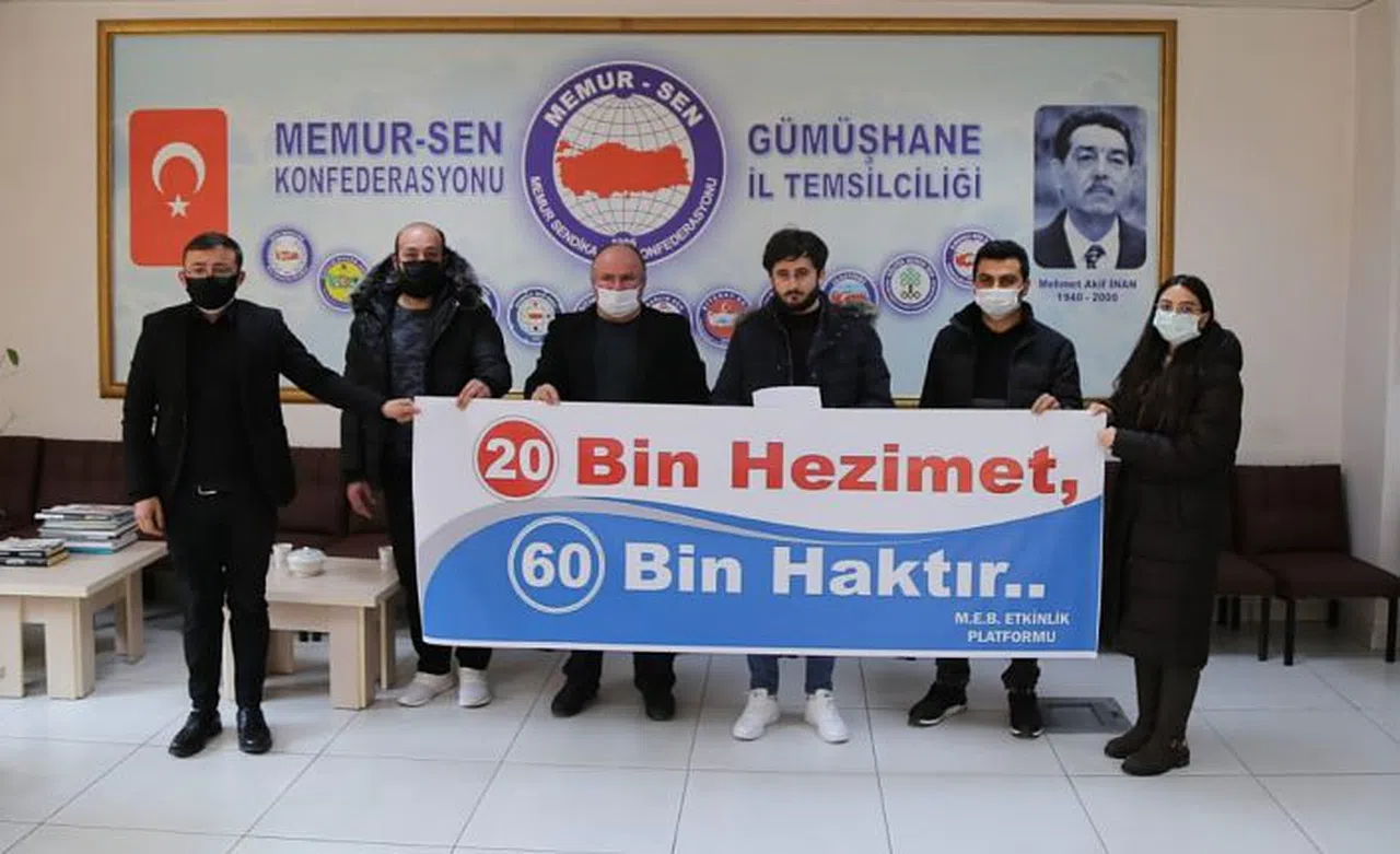 Gümüşhane’de atama bekleyen öğretmenler “20 bin hezimet, 60 bin haktır” diyerek basın açıklaması yaptı.
