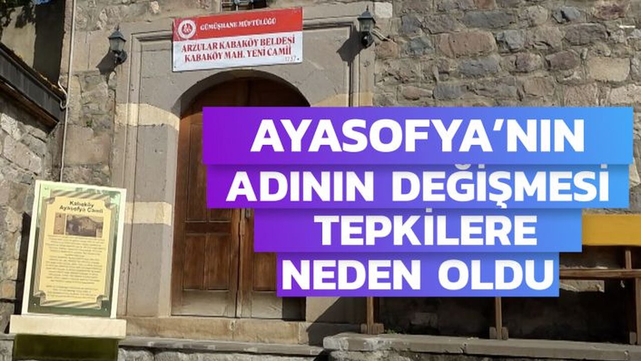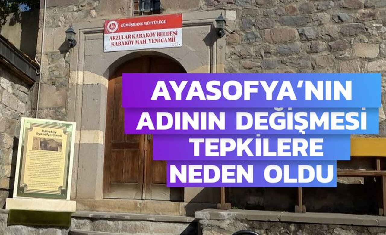 Türkiye'deki 9 Ayasofya camisinden birisi olan ve kapısında tarihi çeşmesi bulunan tarihi yapıyı mahalle sakinleri gözü gibi korurken bir skandala imza atıldı. Orta Çağ’da yapıldığı bilinen ve 285 yıldır Müslümanların ibadet ettiği tarihi caminin ismi tarihi duvarlara vida ile sabitlenen tabela ile Gümüşhane Müftülüğü tarafından değiştirildi.
