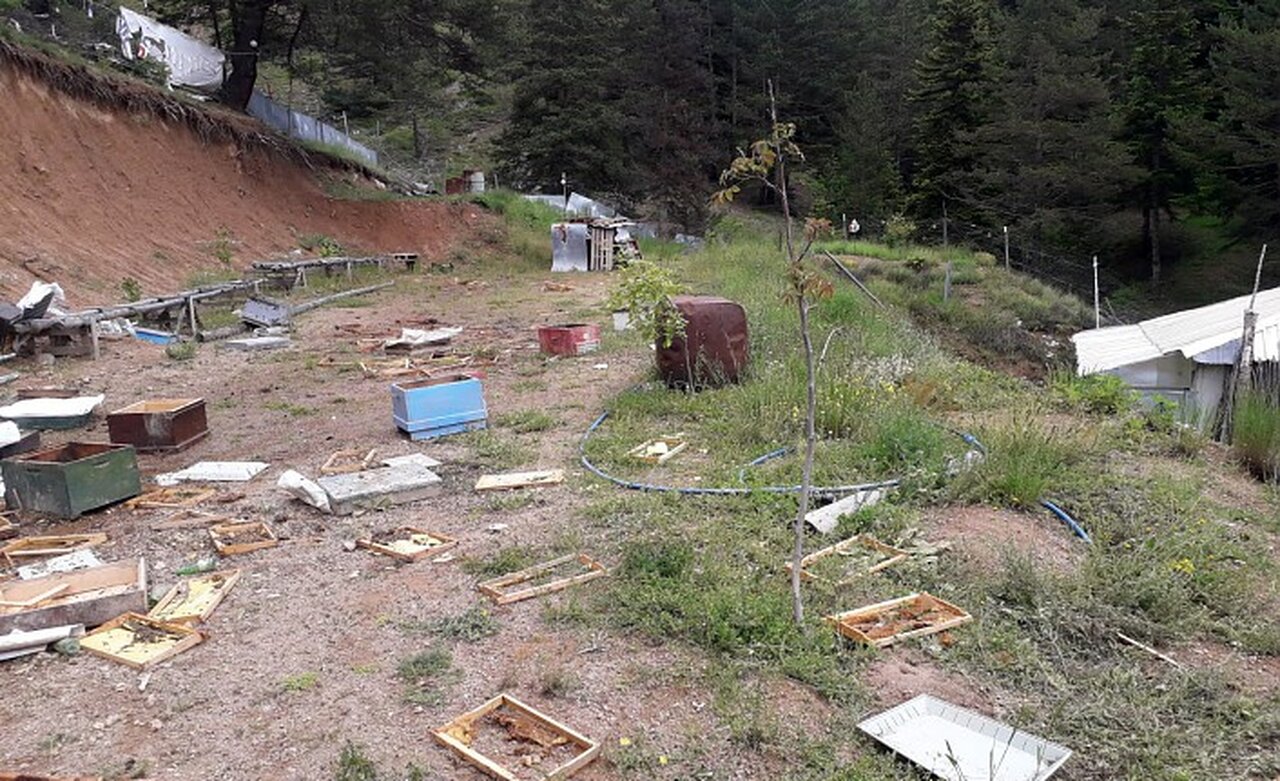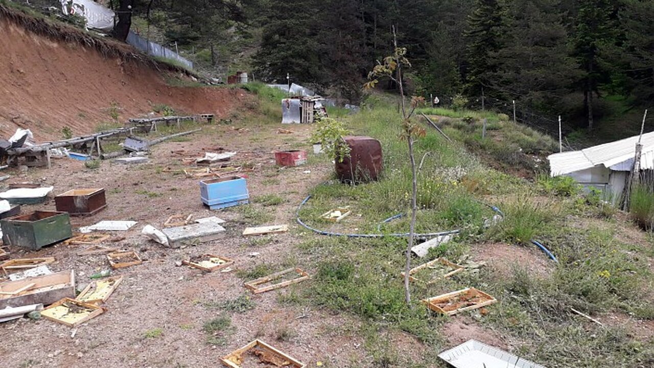 Uzun yıllardan beri arıcılık yapan Kaya, 14 yıldır arılarının bir kısmını yayladaki evinin bahçesine koyuyor. Bu yıl da aynı şekilde arıların bir kısmını yayladaki evinin bahçesine getiren bir kısmını da köyde bırakan Kaya, önceki günlerde yaylaya gittiğinde gördüğü manzara karşısında şok oldu.