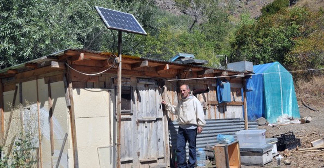 Gümüşhane’de 17 yıldır merkeze bağlı Erdemler köyüne yaz aylarında arılarıyla birlikte gelen Trabzonlu Hümmet Zengin, kurduğu sistemle elektrik sorunundan kurtuldu.