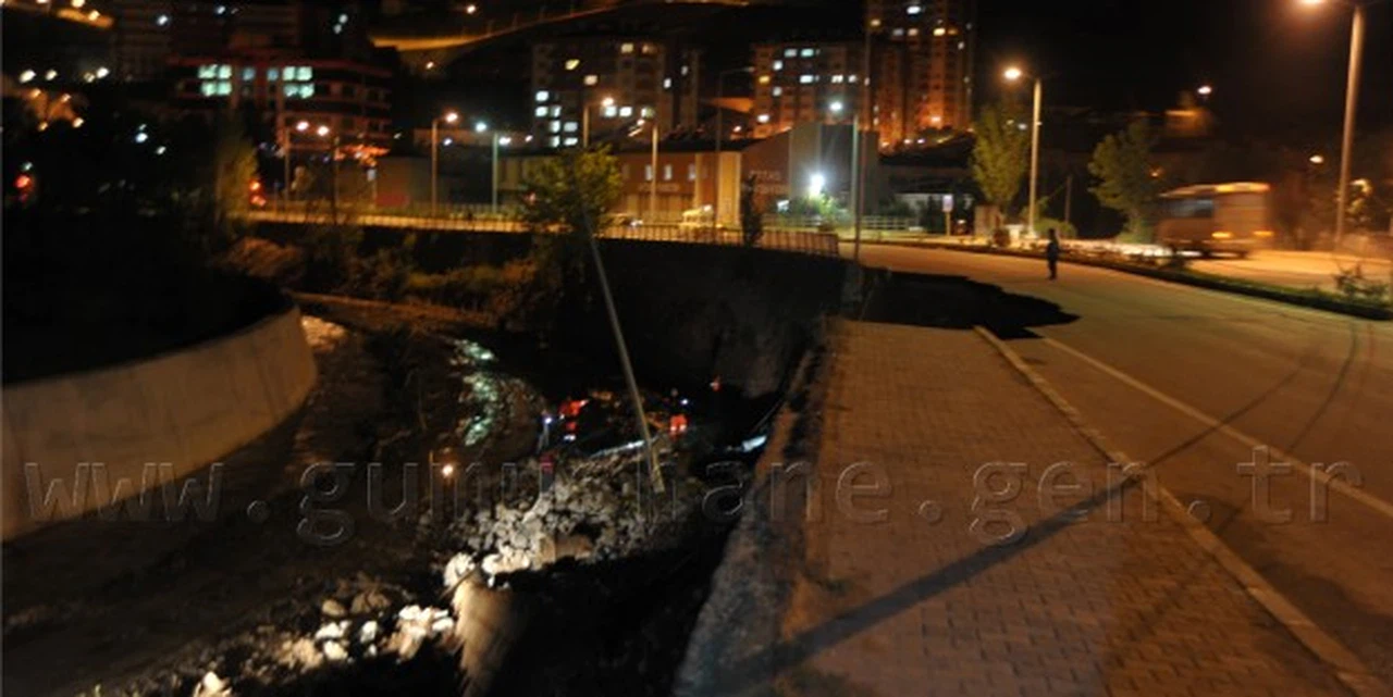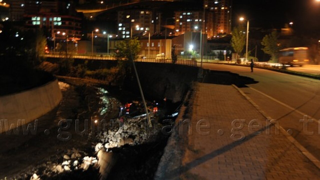 Dün gece gerçekleşen olayın ardından bölünmüş yolun Harşit Çayı kenarındaki istinat duvarı ve yolun bir bölümü yıkılırken, olay nedeniyle trafik ekipleri bölünmüş yolun çökme olan tarafını trafiğe kapattı.