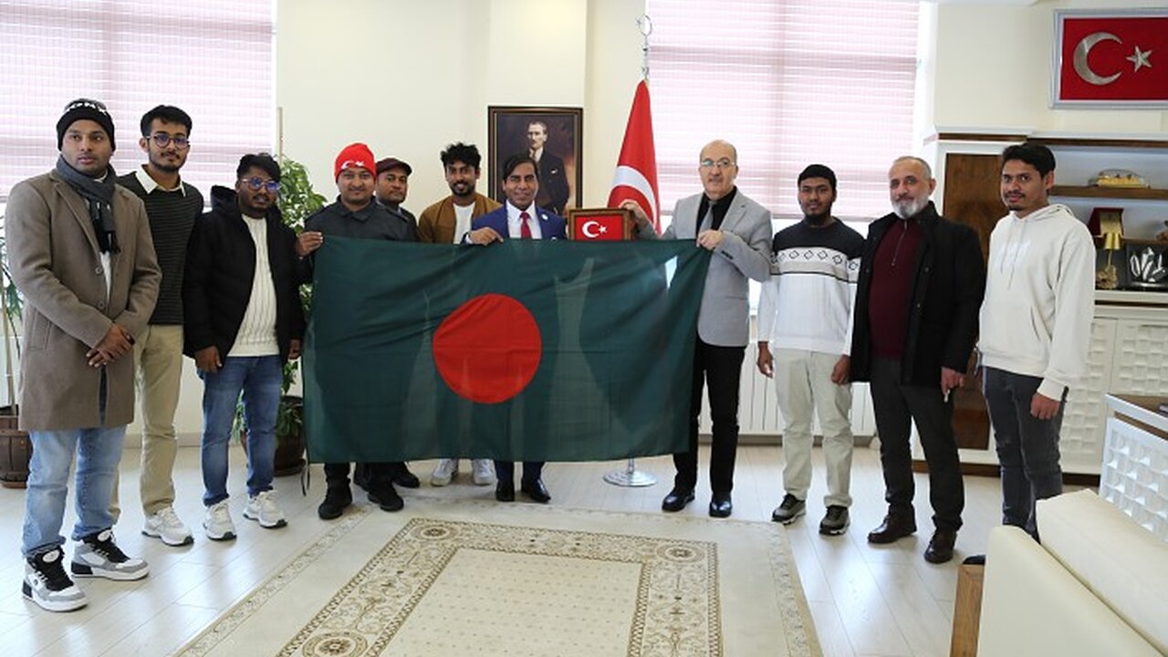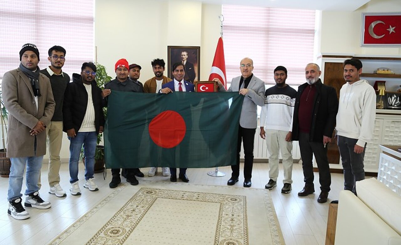 Rektörlük makamında gerçekleşen ziyarete Uluslararası Öğrenci Koordinatörü Dr. Öğr. Üyesi Mustafa Ayyıldız ve üniversitede eğitim gören Bangladeşli öğrenciler katıldı.