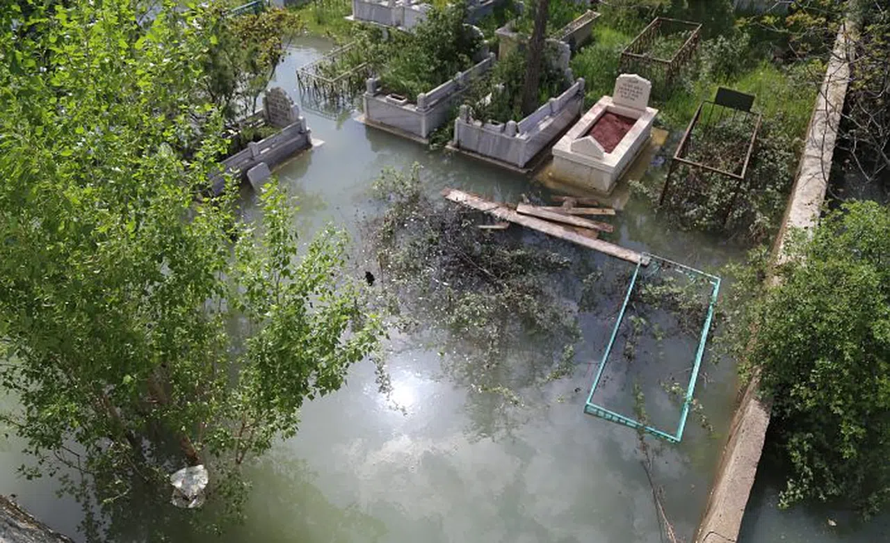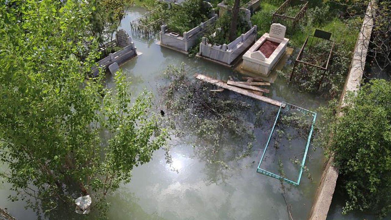 Suların yükselmesiyle birlikte, bölgede bulunan bahçe ve tarım arazilerini su basarken Çamlıca Mahallesi’nde bulunan bir mezarlık da sular altında kaldı. Su baskını yaşanan mezarlıktaki görüntü, görenleri rahatsız ederken, bölge halkı taşkınların bir daha yaşanmaması için önlem alınmasını istiyor.