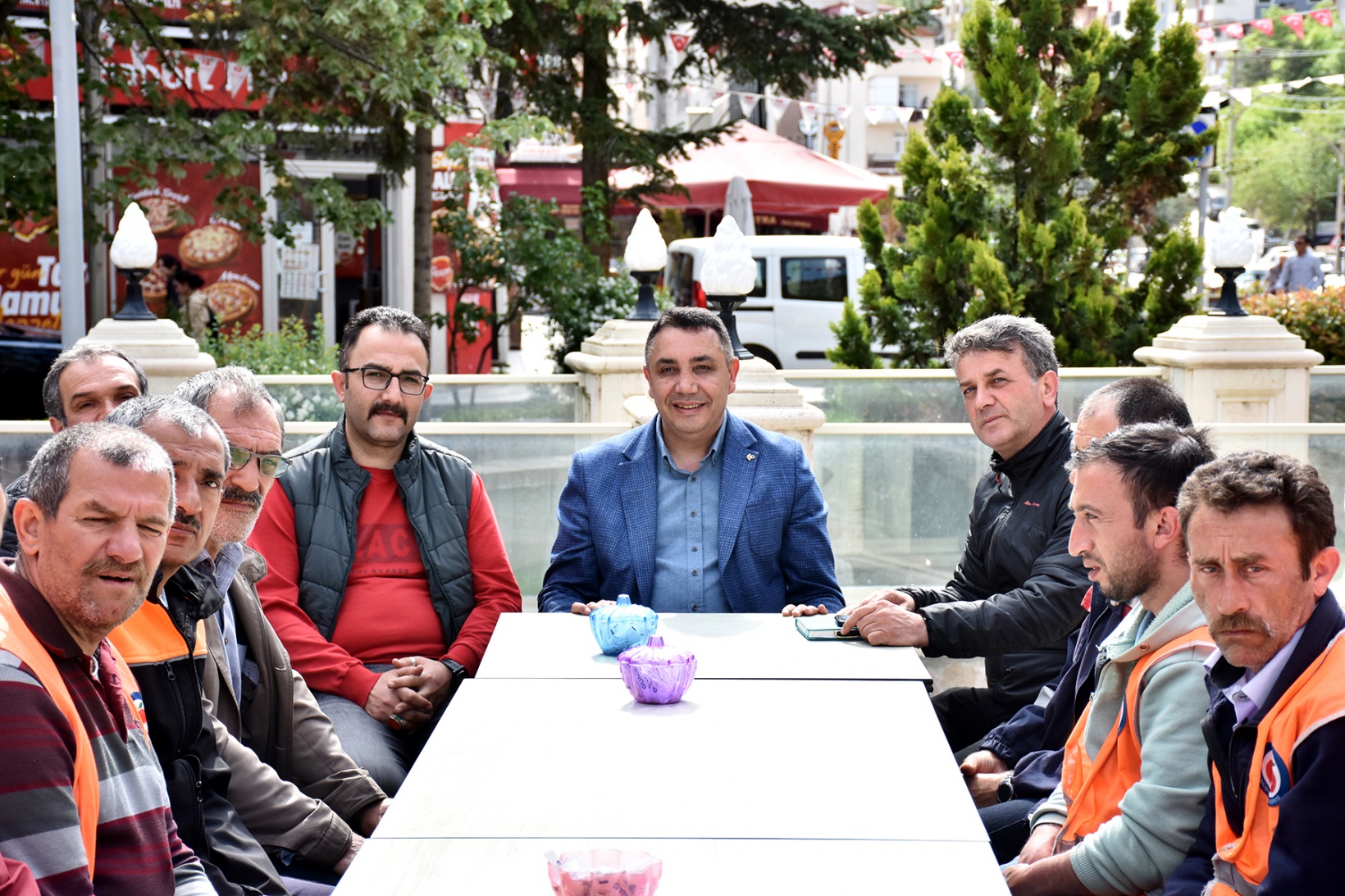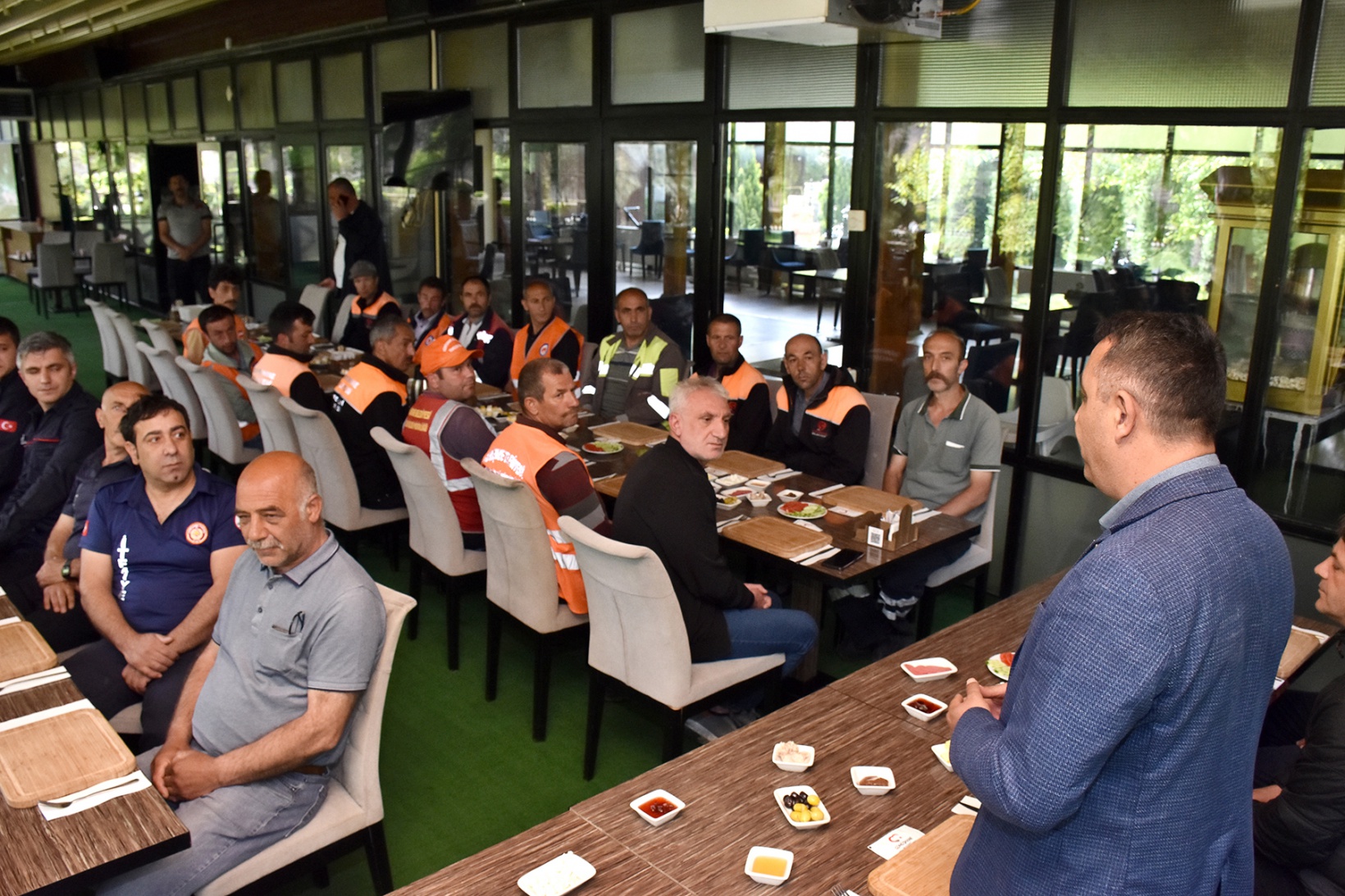 Konuşmanın ardından Başkan Başer, işçilerle birlikte kahvaltı yaparak sohbet etti. İşçiler de Başkan Başer’in kendilerini anlayışla karşılaması ve emeklerini takdir etmesinden dolayı memnuniyetlerini dile getirdi.