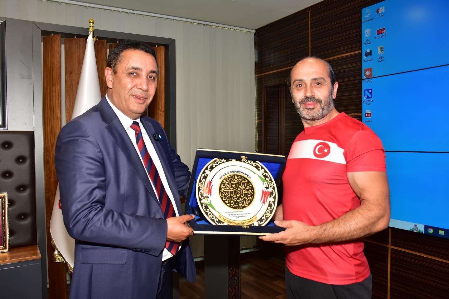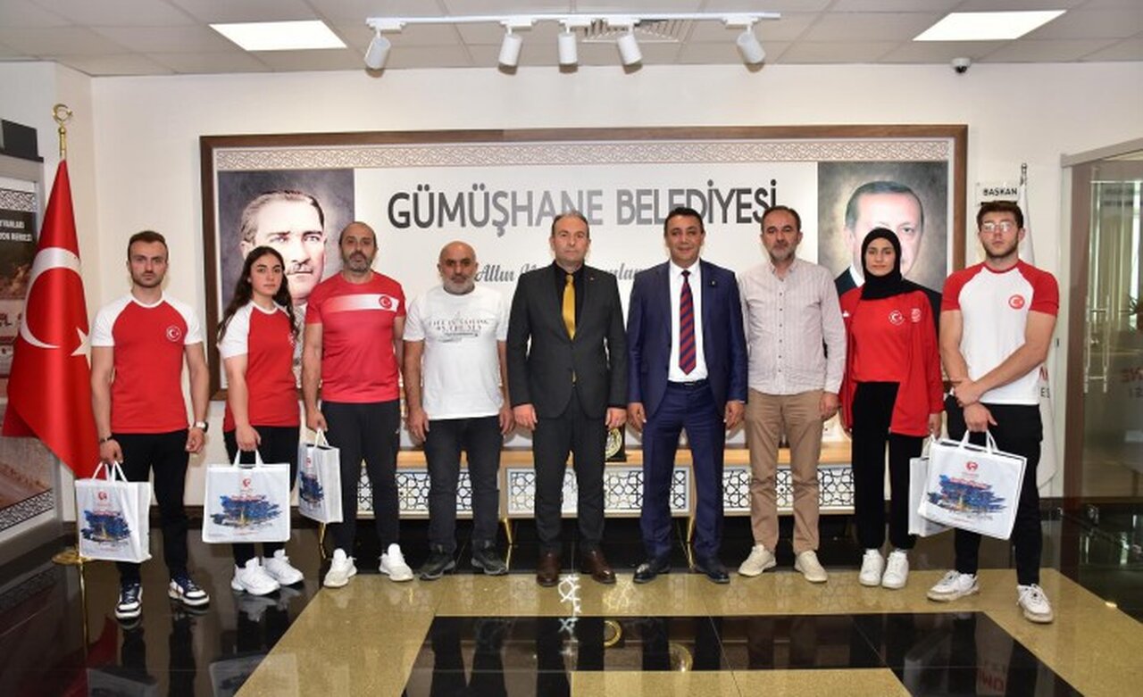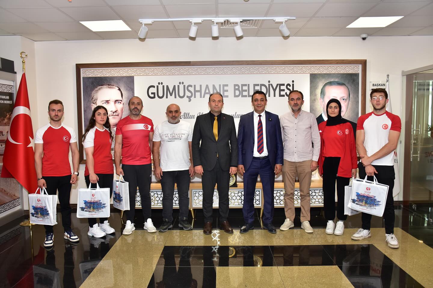 Başkan Başer, 15-24 Ağustos tarihleri arasında Moldova’da yapılan Dünya Bilek Güreşi Şampiyonası’nda ülkemizi ve Gümüşhane’yi büyük bir gururla temsil eden milli sporcular Büyük bayanlarda 65 kilogram sol kol dünya şampiyonu Rabia Kayahan, 23 yaş altı bayanlarda 55 kilogram sağ-sol kol dünya şampiyonu Şükriye Yılmaz, büyük erkekler 55 kilogram sağ-sol kol dünya 3.’sü Berat Yıldırım, 18 yaş altı 70 kilogram erkekler sağ kol dünya 3.’sü Muhammed Yasir Dalma ve Antrenör Davut Altuntaş’ı makamında ağırladı.