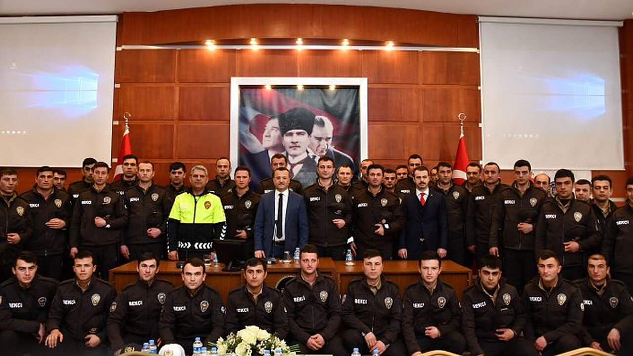 Gümüşhane İl Emniyet Müdürlüğü bünyesinde görev yapacak olan 45 bekçi için göreve başlangıç ve sertifika töreni düzenlendi.