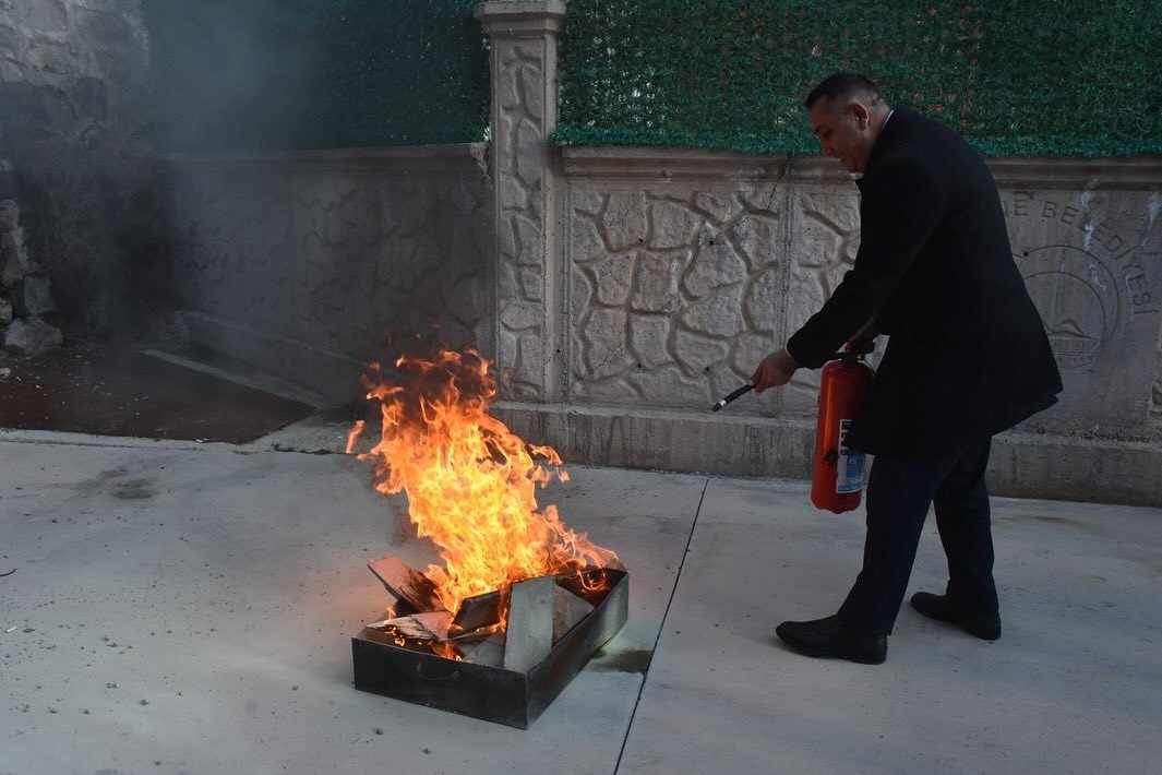Katılımcılar olası bir yangın durumunda doğru müdahale yöntemlerini öğrenerek, teorik bilgilerini pratiğe dökme fırsatı buldu.