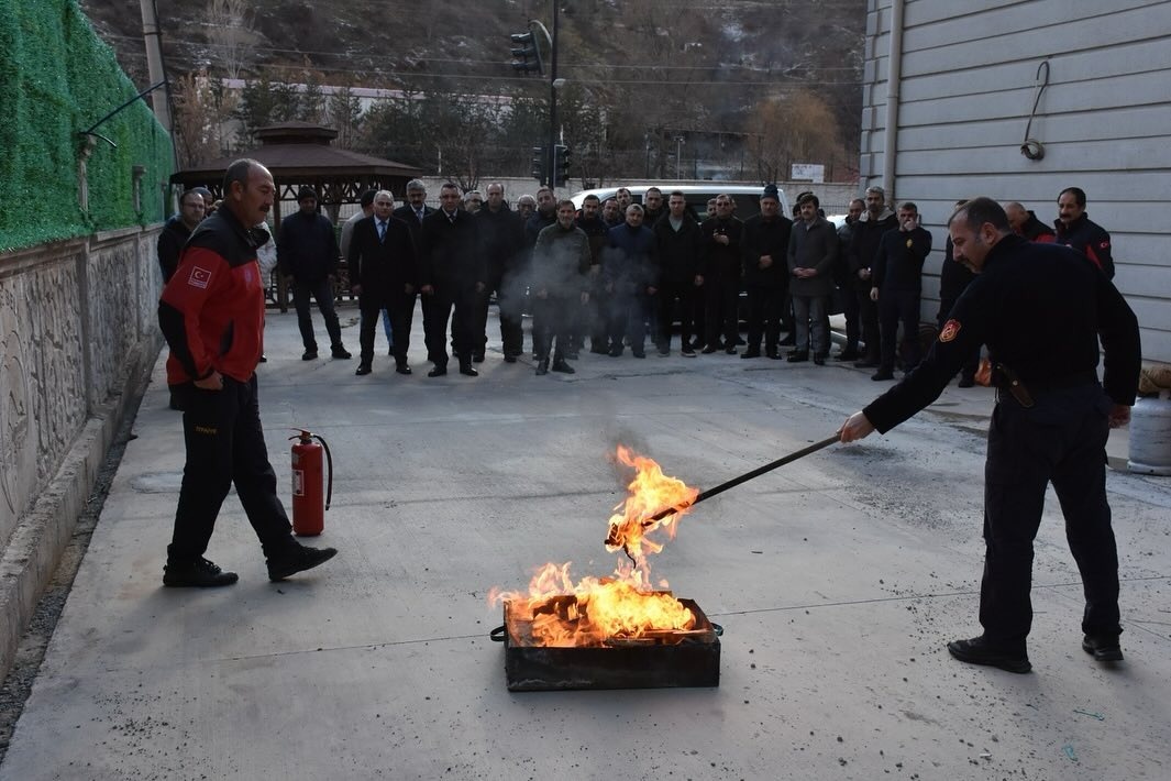 Gümüşhane Belediyesi İtfaiye Müdürlüğü uzman ekipleri tarafından verilen eğitimde, yangın çıkış nedenleri, yangın söndürme teknikleri ve acil durumlarda yapılması gerekenler uygulamalı olarak anlatıldı.