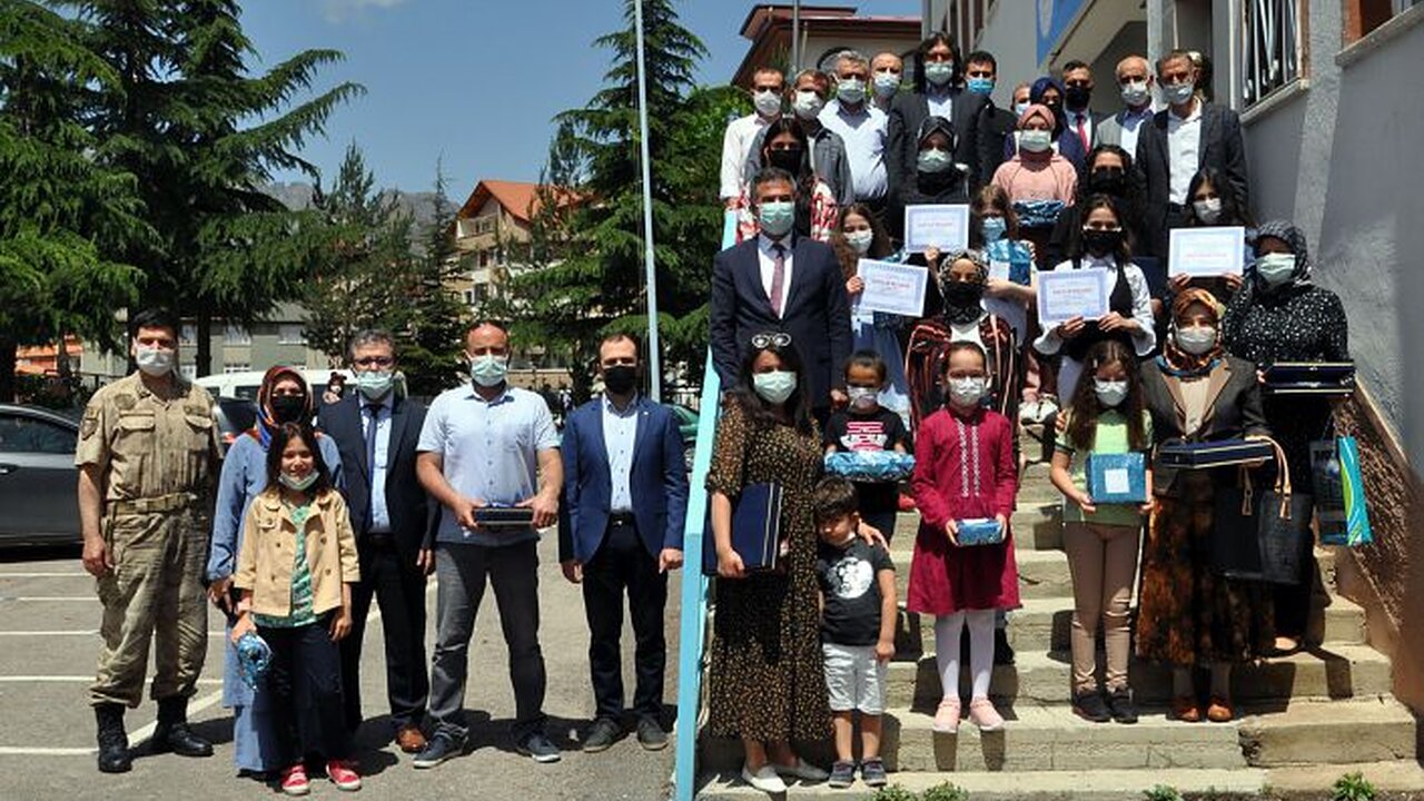 Ödül törenine Doğan’ın yanısıra Milli Eğitim Müdür Yardımcıları Mesut Olgun, Musa Uncu, Şube Müdürü Gönül Eroğlu, okul müdürleri ve dereceye giren öğretmen ve öğrenciler katıldı.