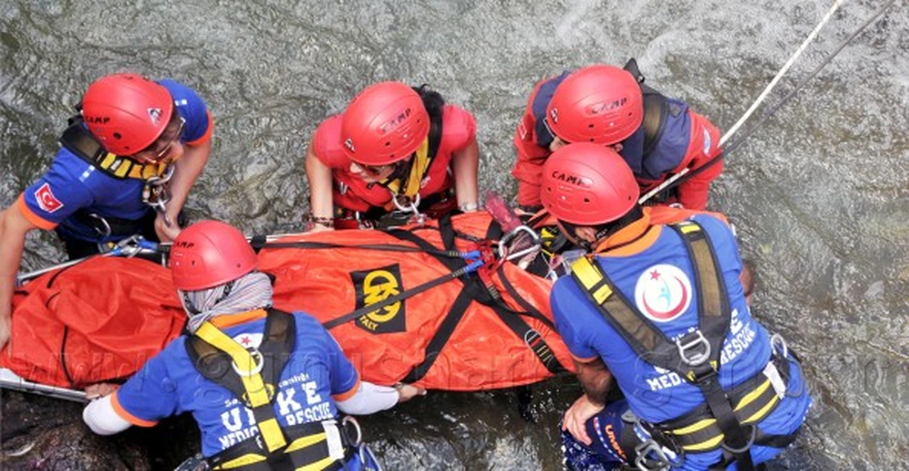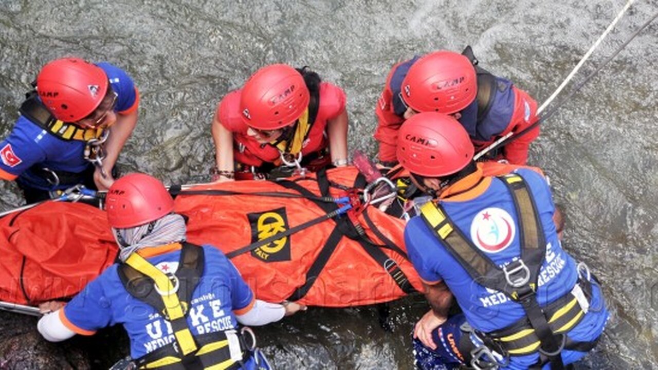 Oldukça dik bir yamaçta boya ve kostüm yardımı ile tamamen gerçekmiş gibi makyajları yapılarak yaralıya dönüştürülen UMKE ekibi üyelerinden oluşan yaralılara müdahale edilen tatbikatta, ip yardımıyla yanına inilen yaralılara ilk olarak tiriaj yapan ekipler daha sonra aciliyet durumuna göre yaralıları sedye yardımıyla yola çıkararak en yakın hastaneye sevk etti.