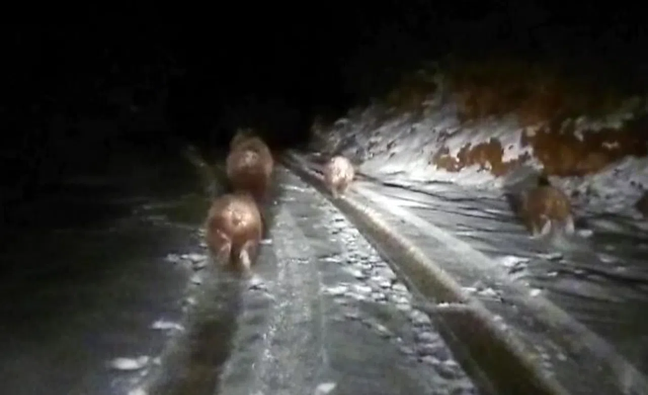 Torul ilçesine bağlı Arılı köyünün Yukarı Mahalle kısmında geçtiğimiz gece aracıyla ilerleyen Süleyman Olgun, bir anca önüne çıkan 4 ayıyla karşı karşıya kaldı. Aracının önünde hızla ilerleyen ayılar bir süre sonra yoldan altına kaçarken, 3 yavrusunu korumak isteyen anne ayının yavruları yoldan çıkış yapana kadar araca manevra yapması dikkatlerden kaçmadı.