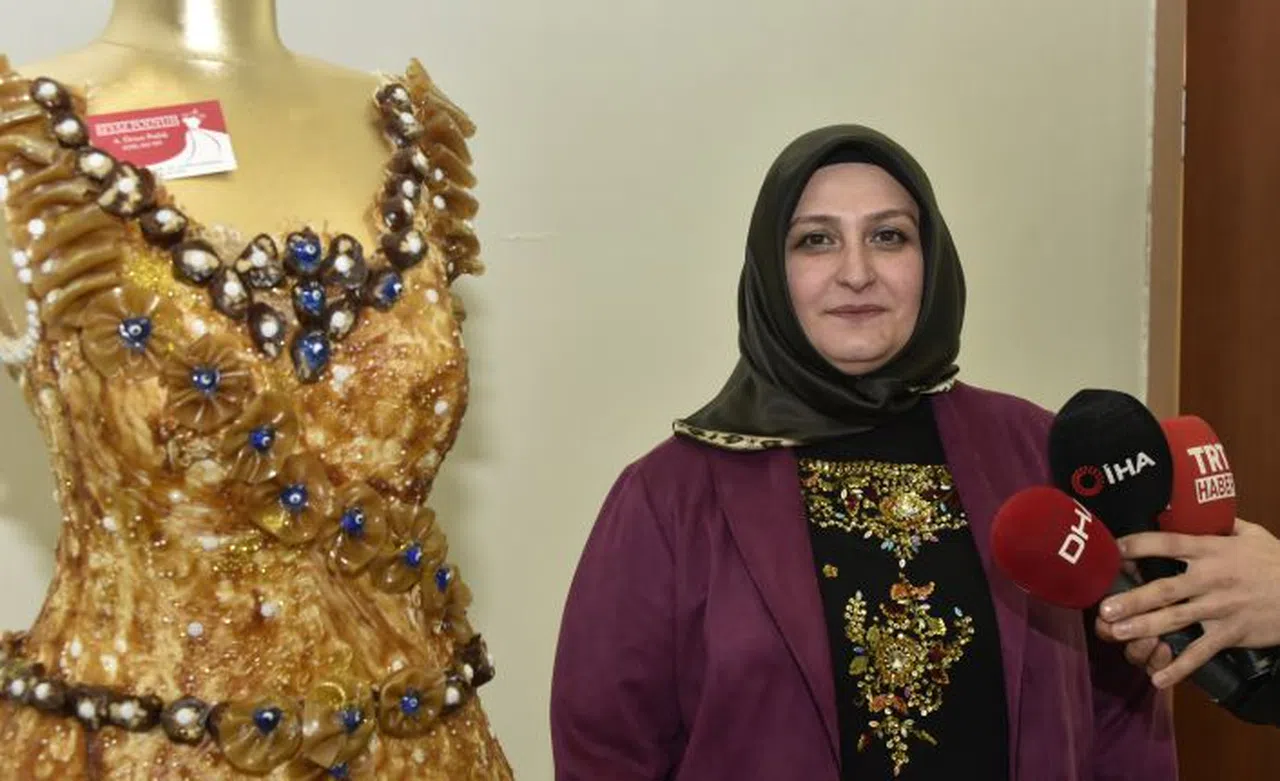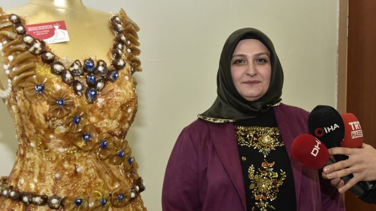 Gümüşhaneli tasarımcı ve iş insanı Ayşegül Öznur Parlak’ın tasarlayıp şehrin coğrafi işaretli ürünleri pestil ve kömeden yaptığı gelinlik büyük ilgi görüyor.