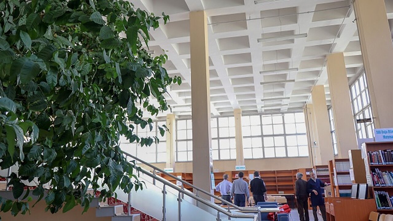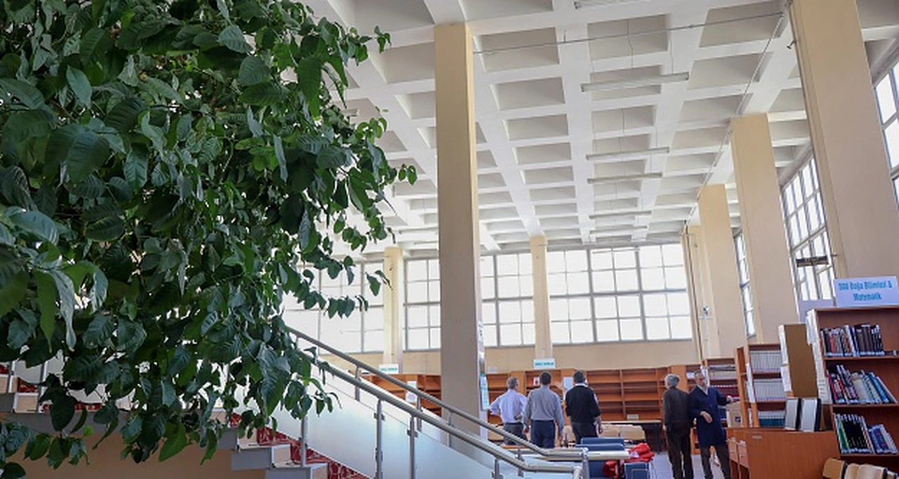 Türkiye’de kapalı ortamda bu kadar büyük doğal, yerinden yetişen bir ağacın olmadığını bildiklerini ifade eden Akhan, kütüphaneyle ilgili şu teknik bilgileri verdi: “Kütüphane 1964 yılında halk evleri bünyesinde kuruldu, 1966 yılında şuan bulunduğumuz binaya taşındı. 1966 yılından beri de bu binada hizmet veriyor. 50 bin civarında kitabımız mevcut. Doluluk oranına da ulaştık. 50 yıl önce o günün şartlarına göre tasarlanmıştı. Tek tip proje üzerine hazırlandı. 2 bini aktif olmak üzere 3 bin 200 kayıtlı üyemiz var. Ortalama günlük 100-150 kişiye hizmet veriyoruz. 2016 yılında 26 bin kişiye hizmet verdik. Binamız gerek günün hızlı yayın akışı, koşulları, özellikle son dönemde gençlerin kütüphaneye olan eğilimi de göz önüne bulundurulduğunda ihtiyaca cevap veremez durumda olduğunu söyleyebiliriz.”