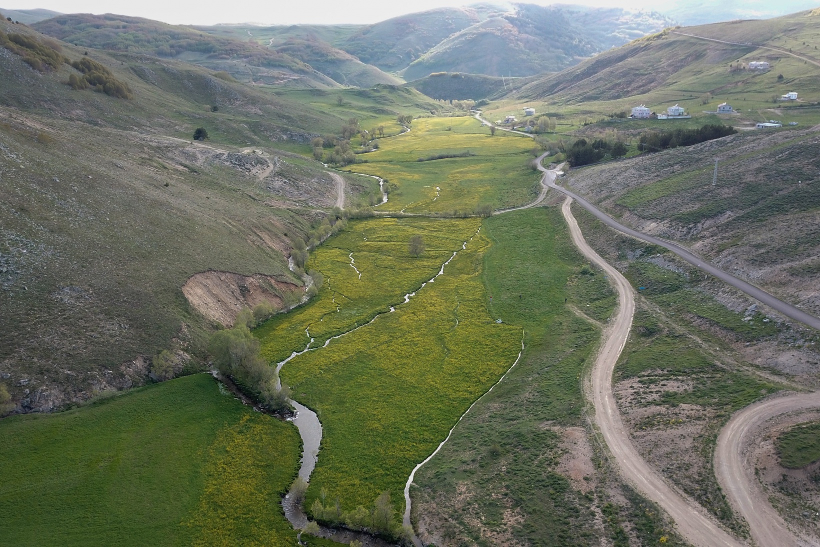 Denizden 2 bin 80 metre yükseklikteki köyün yaylasından ve dağlarından akan suların oluşturduğu ve üzerinde 2 adet tarihi köprünün yer aldığı derenin meydana getirdiği vadide kilometrelerce uzunluktaki alanda yılın bu mevsiminde açan sarı çiçekler bölgeye eşsiz görüntü veriyor.