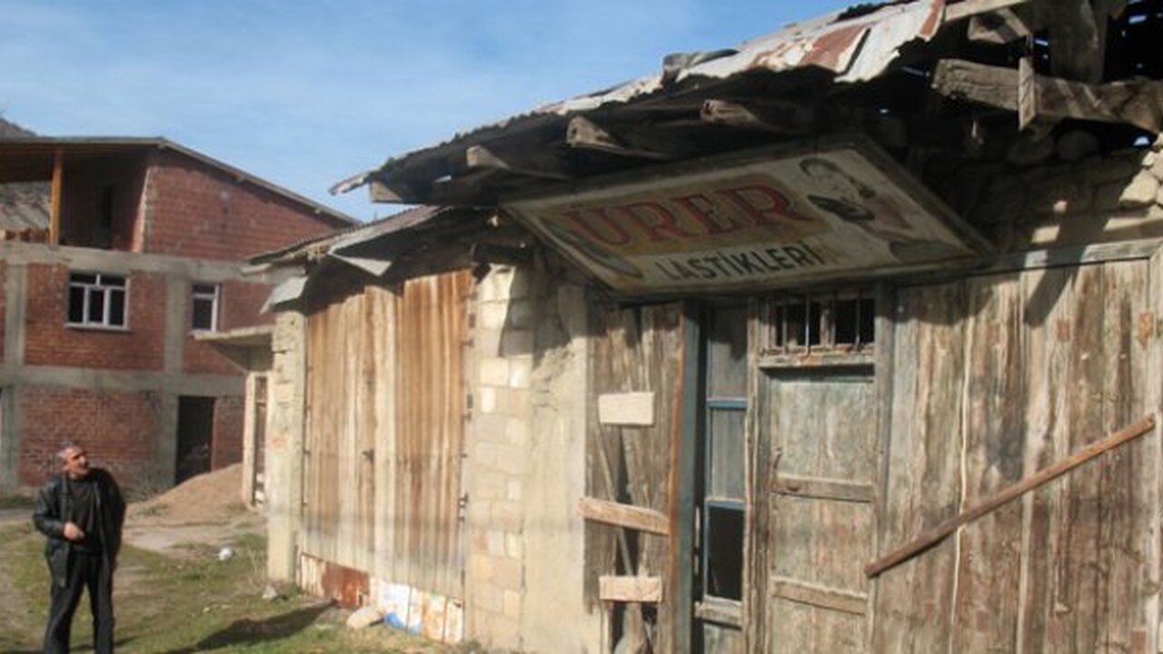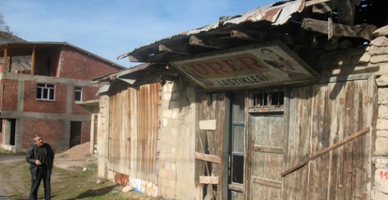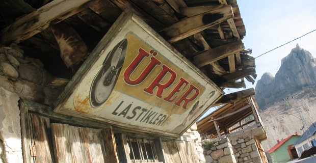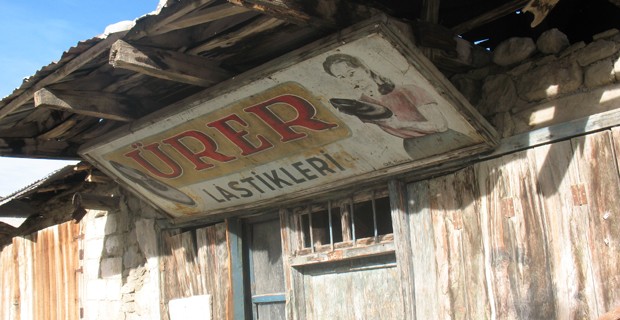 Köy içerisinden geçen yolun faal olduğu, köyde ki ticaretin hareketli olduğu günlerden kalan tabela da bulunan ayakkabı resimleri hangi yönden bakıyorsanız o yöne dönüyor. Ali Saraç adlı sanatçı tarafından yapıldığı, alt kısım da ki imzadan anlaşılan tabela yıllara meydan okurcasına yıkık dökük dükkânın girişini süslüyor.