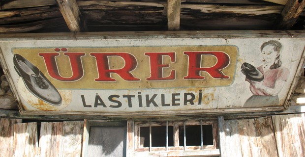 Lastik ayakkabıların artık hayatımızdan çıktığı günümüzde, tabela eski bir dost sıcaklığı ile görenleri selamlıyor.