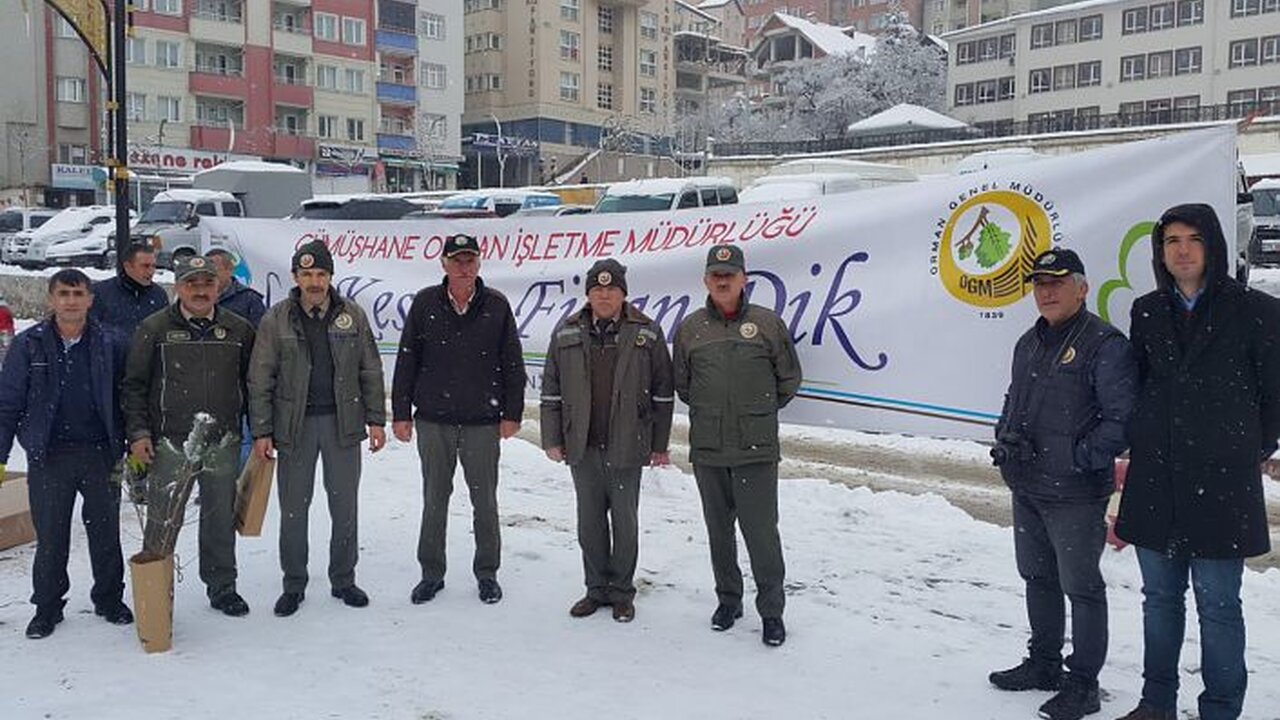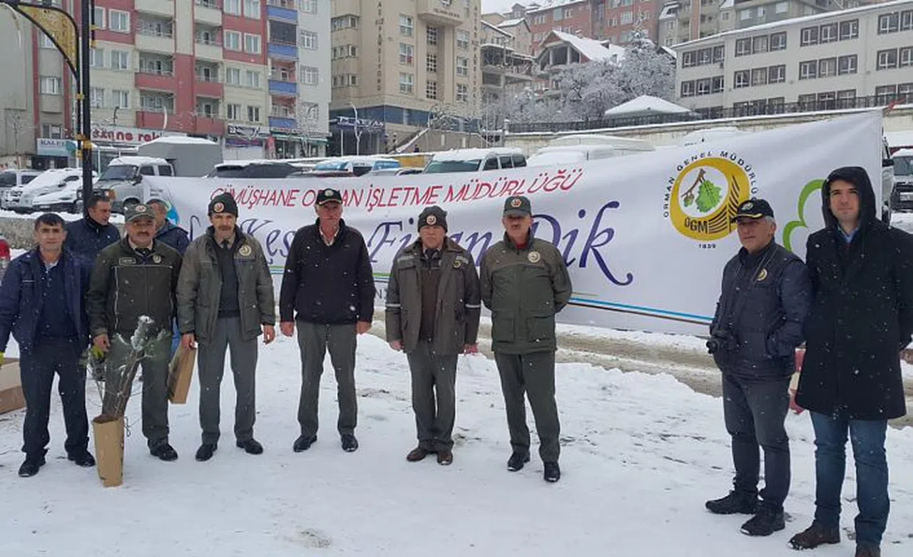 Gümüşhane Orman İşletme Müdürlüğü, yılın son gününde yılbaşı nedeniyle çam ağaçlarının kesilmemesi için vatandaşlara ücretsiz çam fidanı dağıttı.