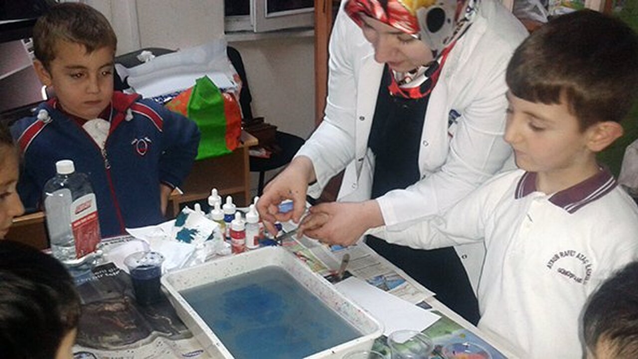 Gümüşhane Aysın Rafet Ataç İlkokulu birinci sınıf öğrencileri Yerli Malı haftasını ebru yaparak kutladı.