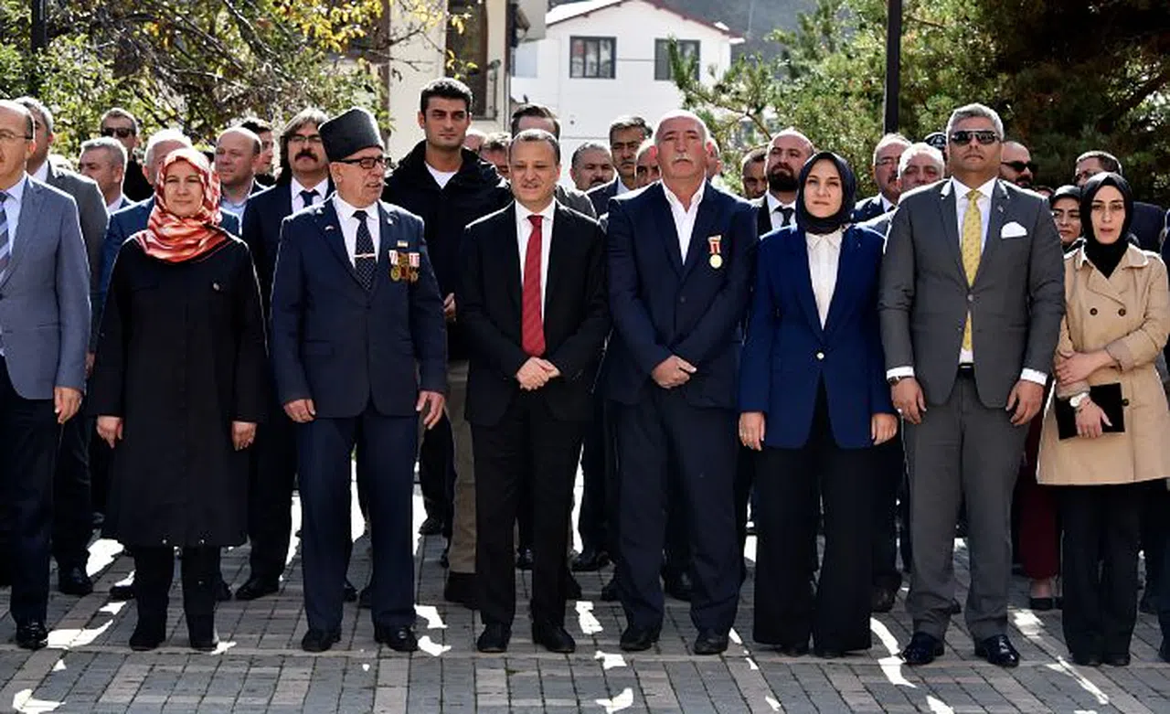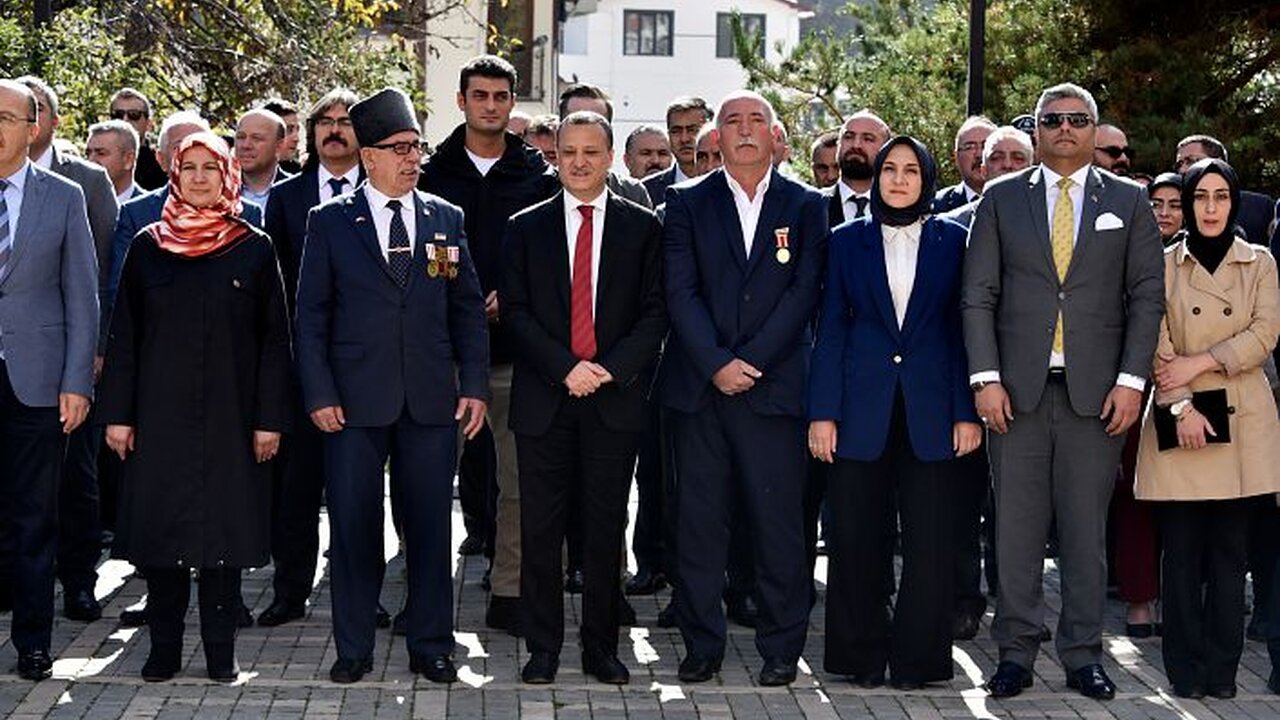 Hükümet Konağı önündeki Atatürk Anıtında gerçekleştirilen törende ilk olarak Vali Kamuran Taşbilek şehit aileleri ve gazilerle birlikte Valilik adına, Belediye Başkan Vekili Arzu Varan da Belediye Başkanlığı adına anıta çelenk sundu.