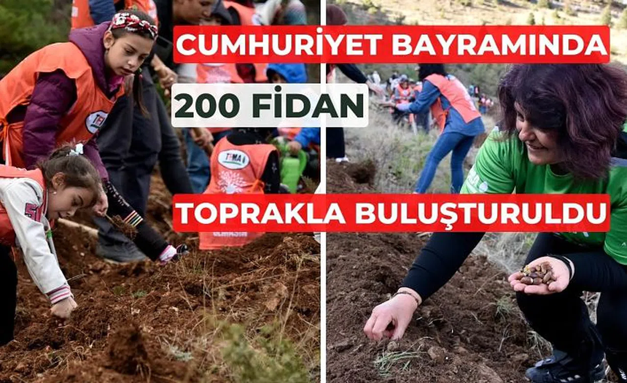 Aralarında çocukların da bulunduğu 120 kişilik grup 200 fidan ve tohumu Orman İşletme Müdürlüğü görevlileri tarafından kendilerine tarif edilen şekilde toprakla buluşturdu.