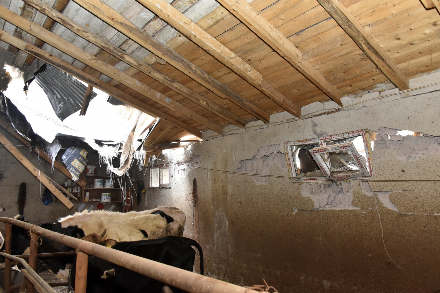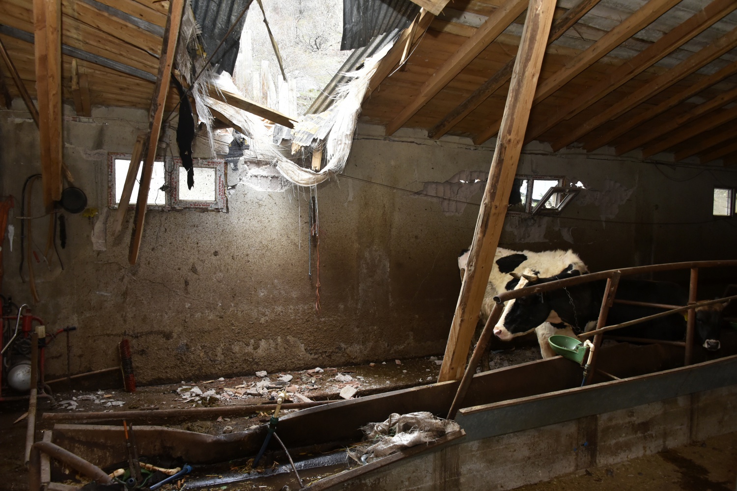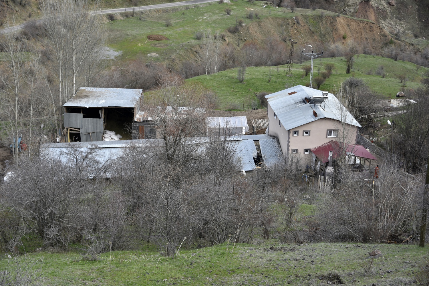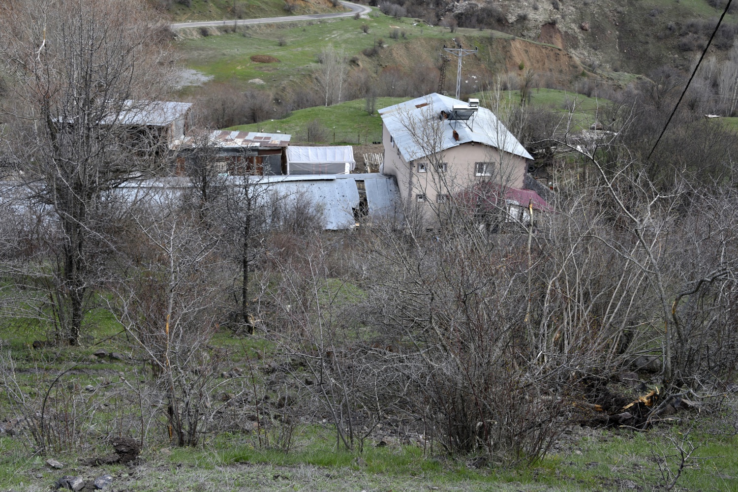 Dağdan koptuktan sonra dik yamaçtaki ağaçları da kırarak hızla ilerleyen dev kayalar evin bahçesine ve içerisinde 40 büyükbaş hayvanın bağlı olduğu ahırın üzerine mermi gibi düştü. Bitişik durumdaki evin bahçesine düşen kayaların yanısıra ahırın içerisinde ve yan duvarına düşen dev kaya kütleleri ahırını çatıyı parçalarken, içinde hayvan dolu ahırda hayvanlara zarar vermemesi, aradaki boşluğa düşmesi olası faciayı engelledi.