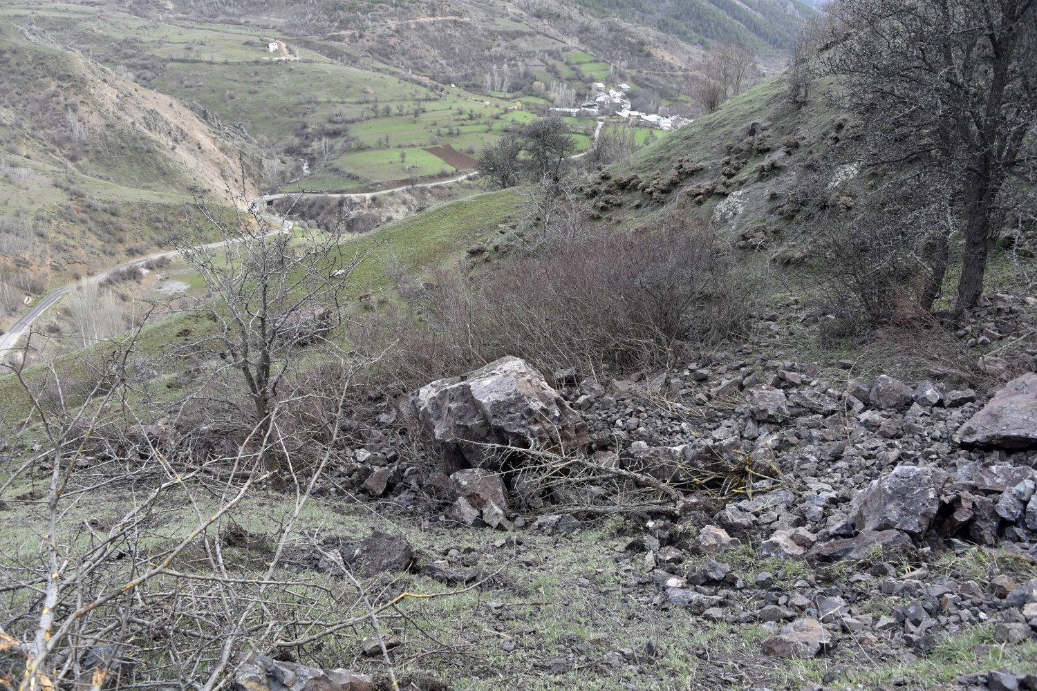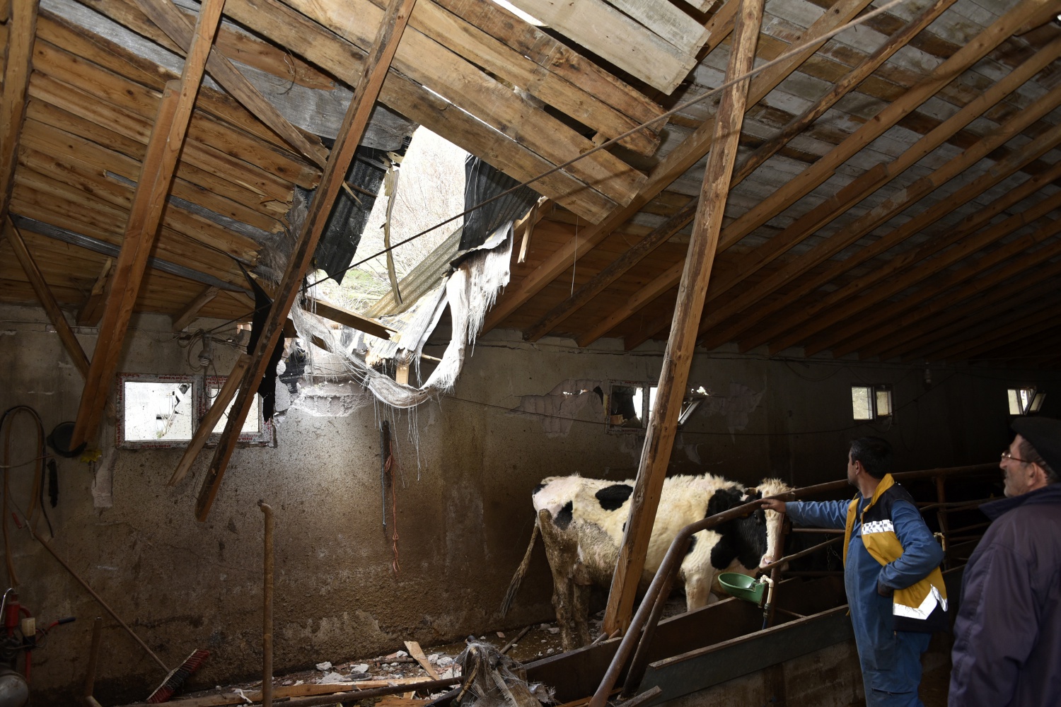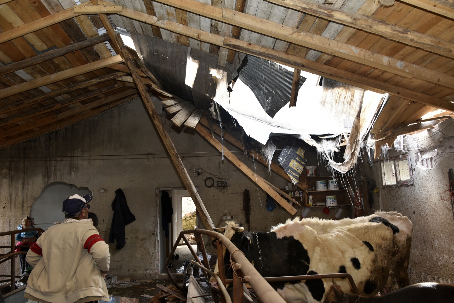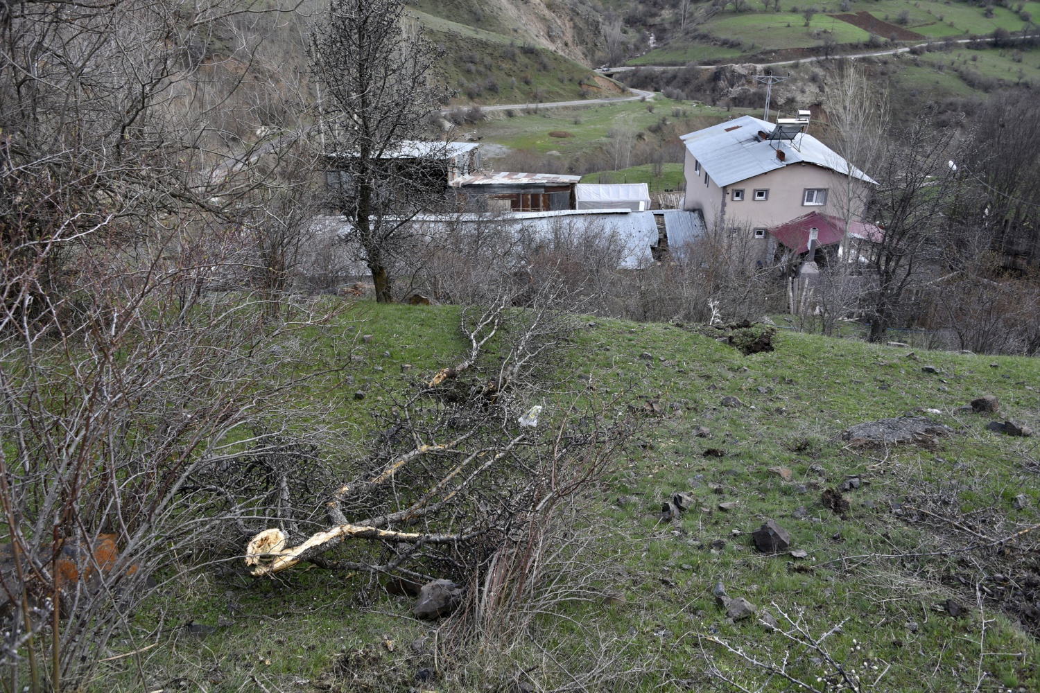 Dağdan koptuktan sonra dik yamaçtaki ağaçları da kırarak hızla ilerleyen dev kayalar evin bahçesine ve içerisinde 40 büyükbaş hayvanın bağlı olduğu ahırın üzerine mermi gibi düştü. Bitişik durumdaki evin bahçesine düşen kayaların yanısıra ahırın içerisinde ve yan duvarına düşen dev kaya kütleleri ahırını çatıyı parçalarken, içinde hayvan dolu ahırda hayvanlara zarar vermemesi, aradaki boşluğa düşmesi olası faciayı engelledi.