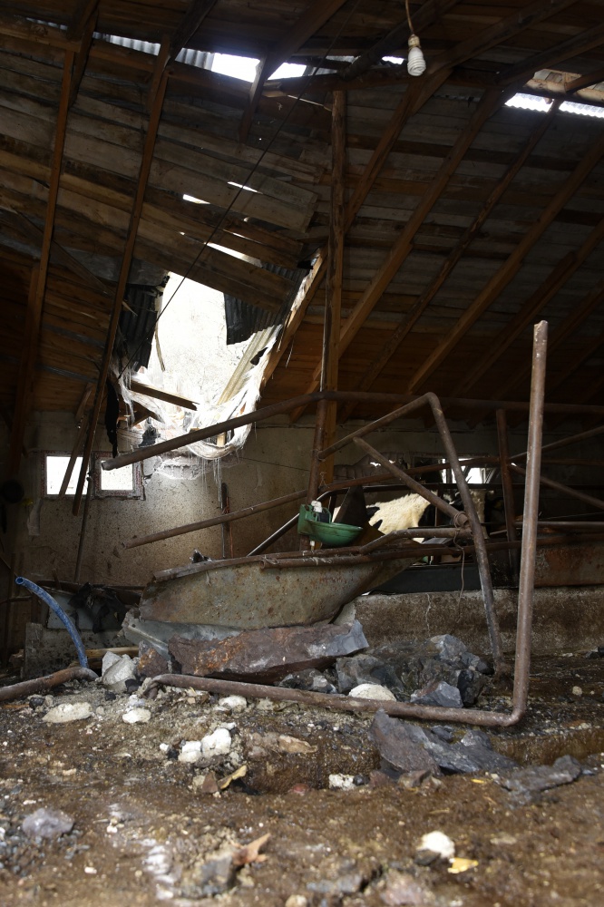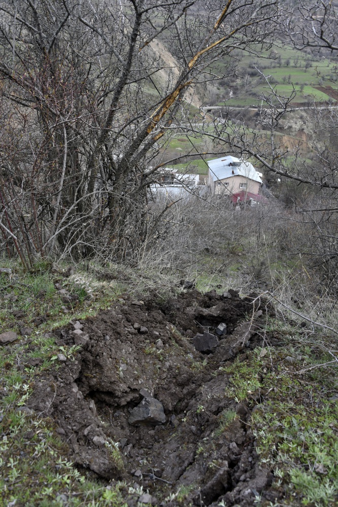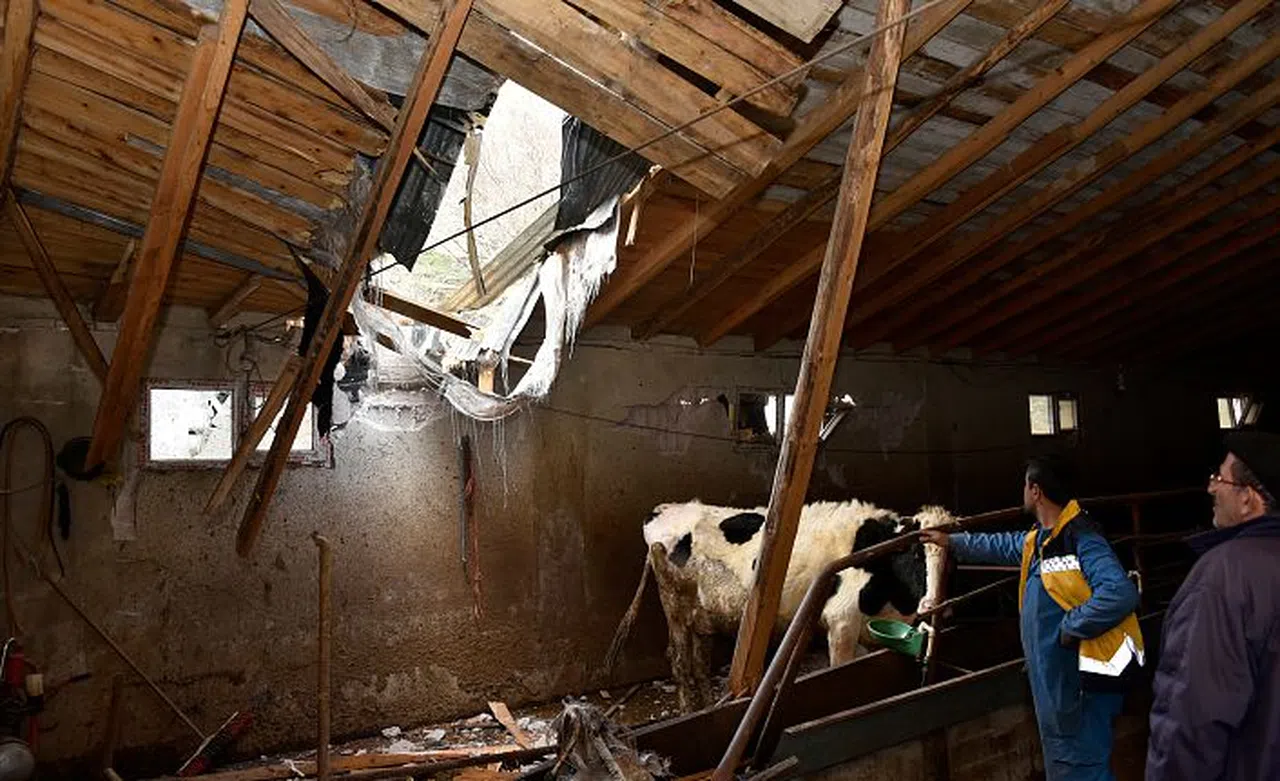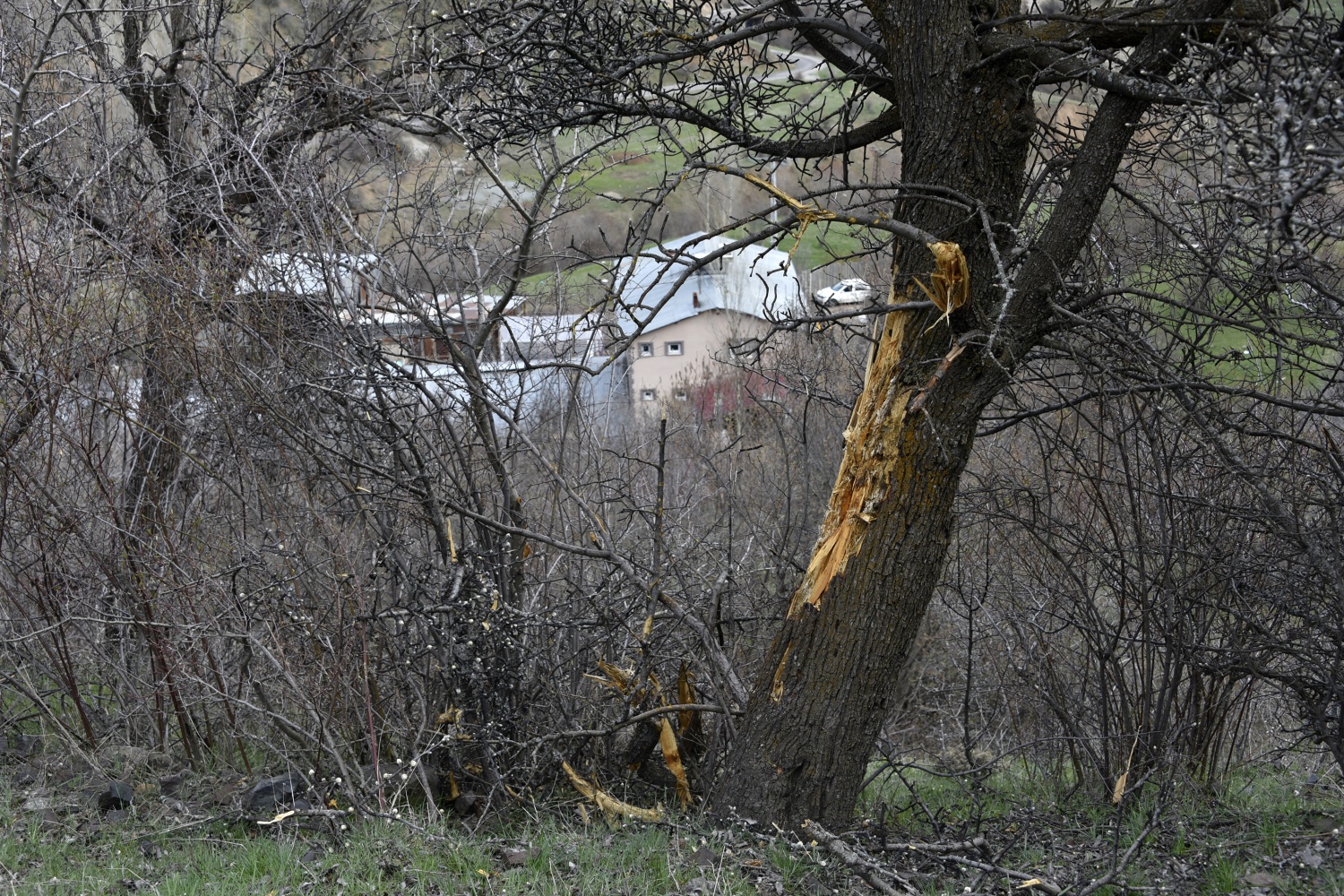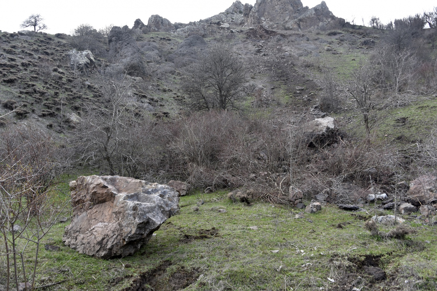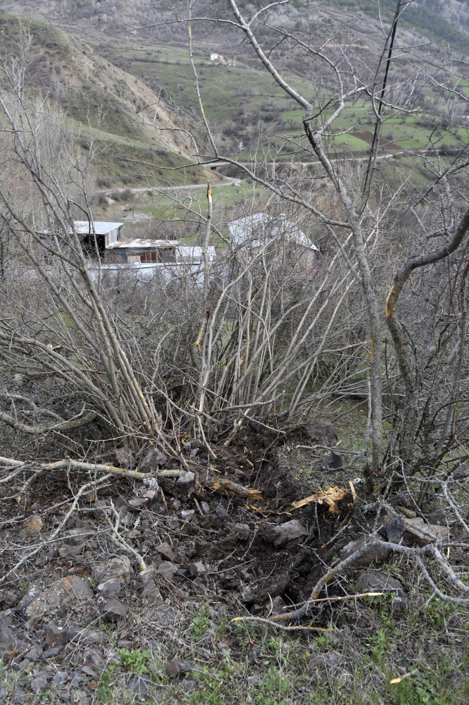 Dağdan koptuktan sonra dik yamaçtaki ağaçları da kırarak hızla ilerleyen dev kayalar evin bahçesine ve içerisinde 40 büyükbaş hayvanın bağlı olduğu ahırın üzerine mermi gibi düştü. Bitişik durumdaki evin bahçesine düşen kayaların yanısıra ahırın içerisinde ve yan duvarına düşen dev kaya kütleleri ahırını çatıyı parçalarken, içinde hayvan dolu ahırda hayvanlara zarar vermemesi, aradaki boşluğa düşmesi olası faciayı engelledi.