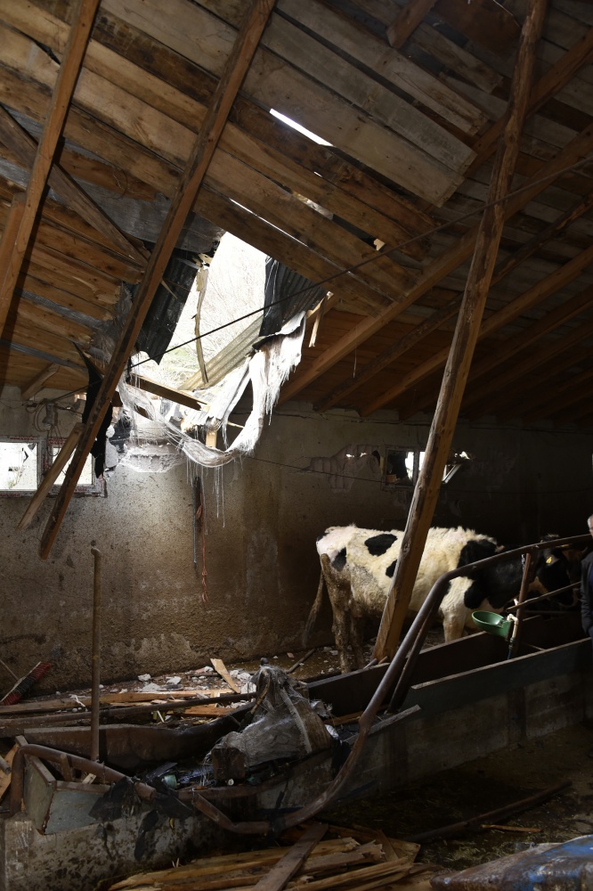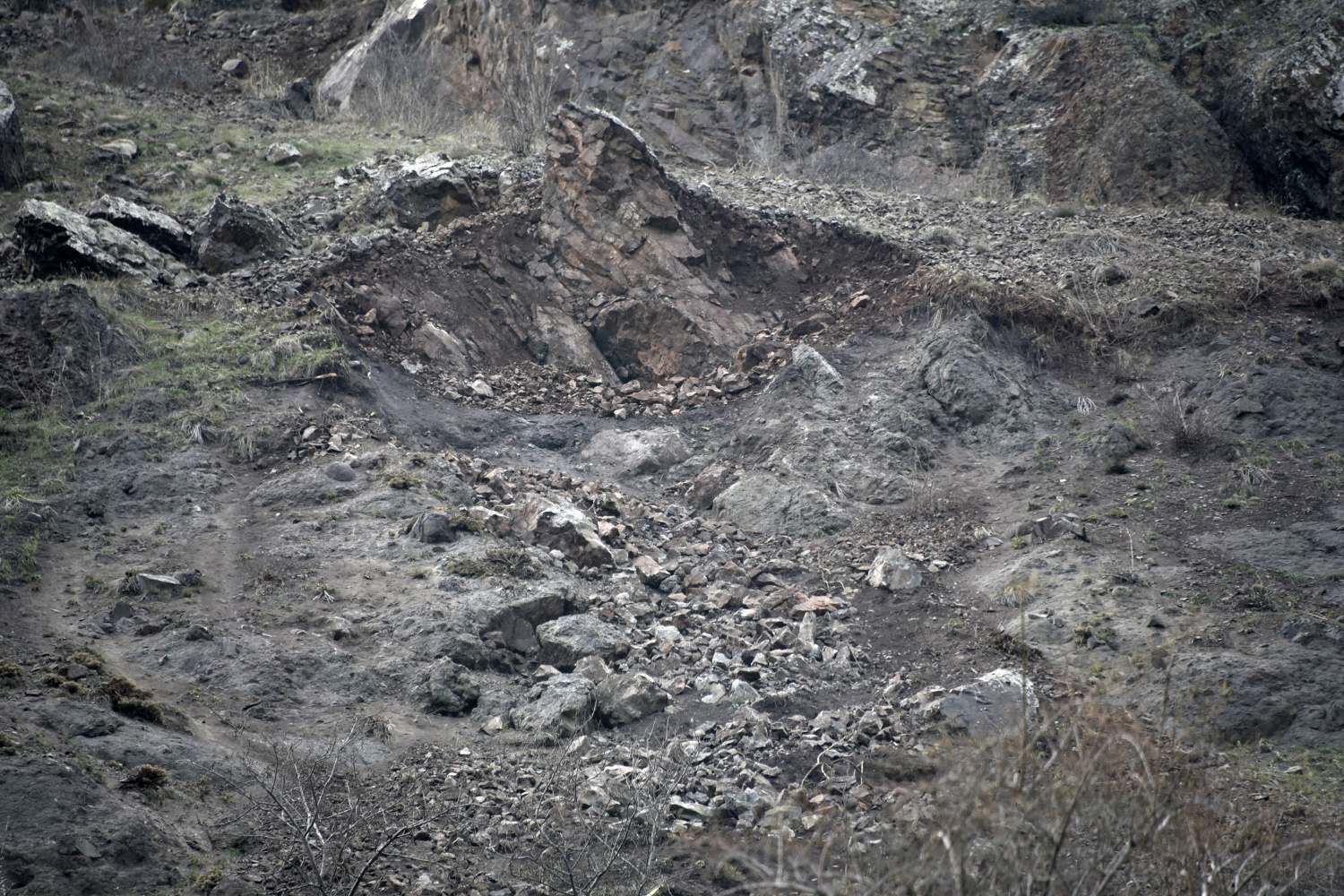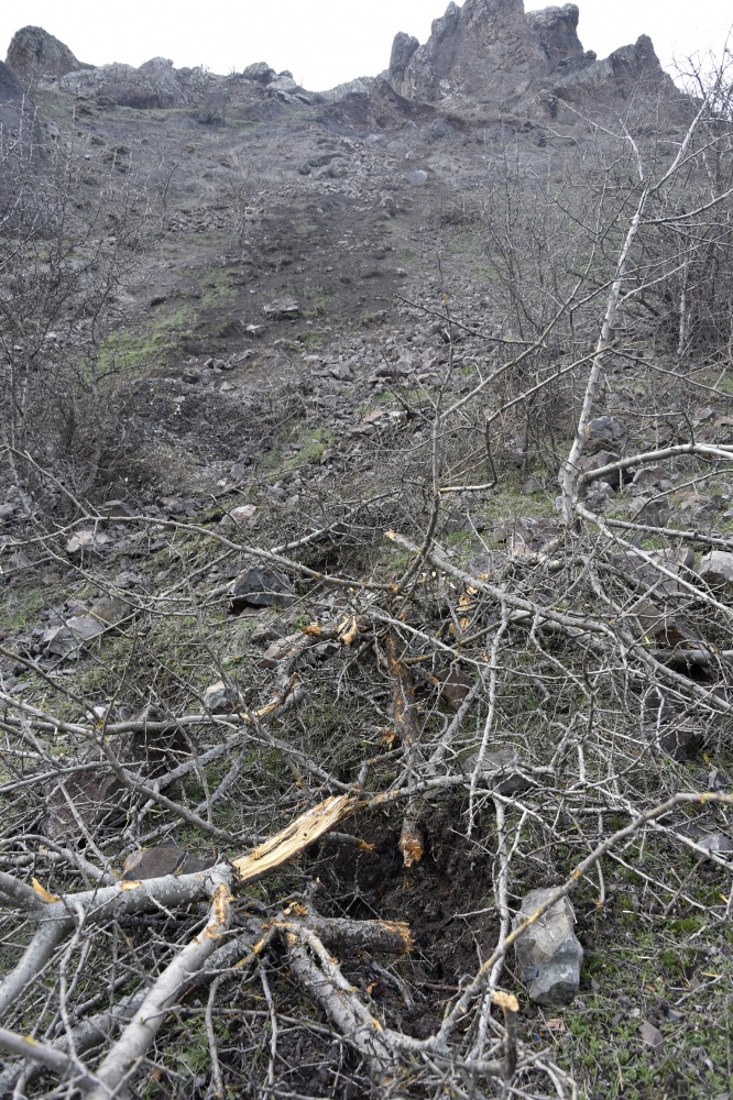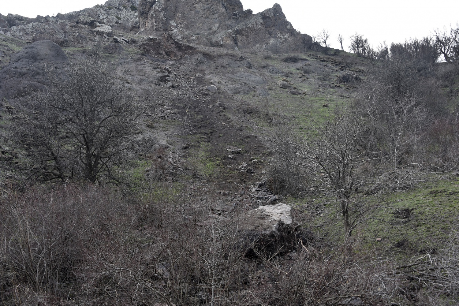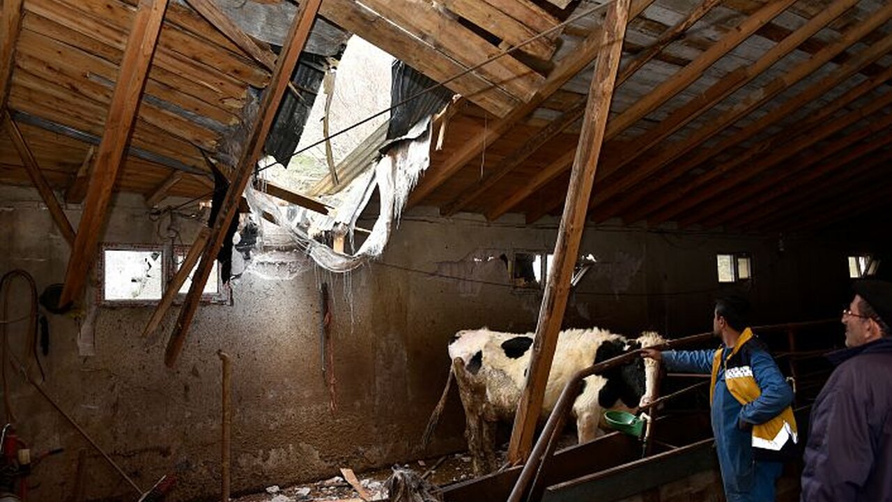 Dağdan koptuktan sonra dik yamaçtaki ağaçları da kırarak hızla ilerleyen dev kayalar evin bahçesine ve içerisinde 40 büyükbaş hayvanın bağlı olduğu ahırın üzerine mermi gibi düştü. Bitişik durumdaki evin bahçesine düşen kayaların yanısıra ahırın içerisinde ve yan duvarına düşen dev kaya kütleleri ahırını çatıyı parçalarken, içinde hayvan dolu ahırda hayvanlara zarar vermemesi, aradaki boşluğa düşmesi olası faciayı engelledi.