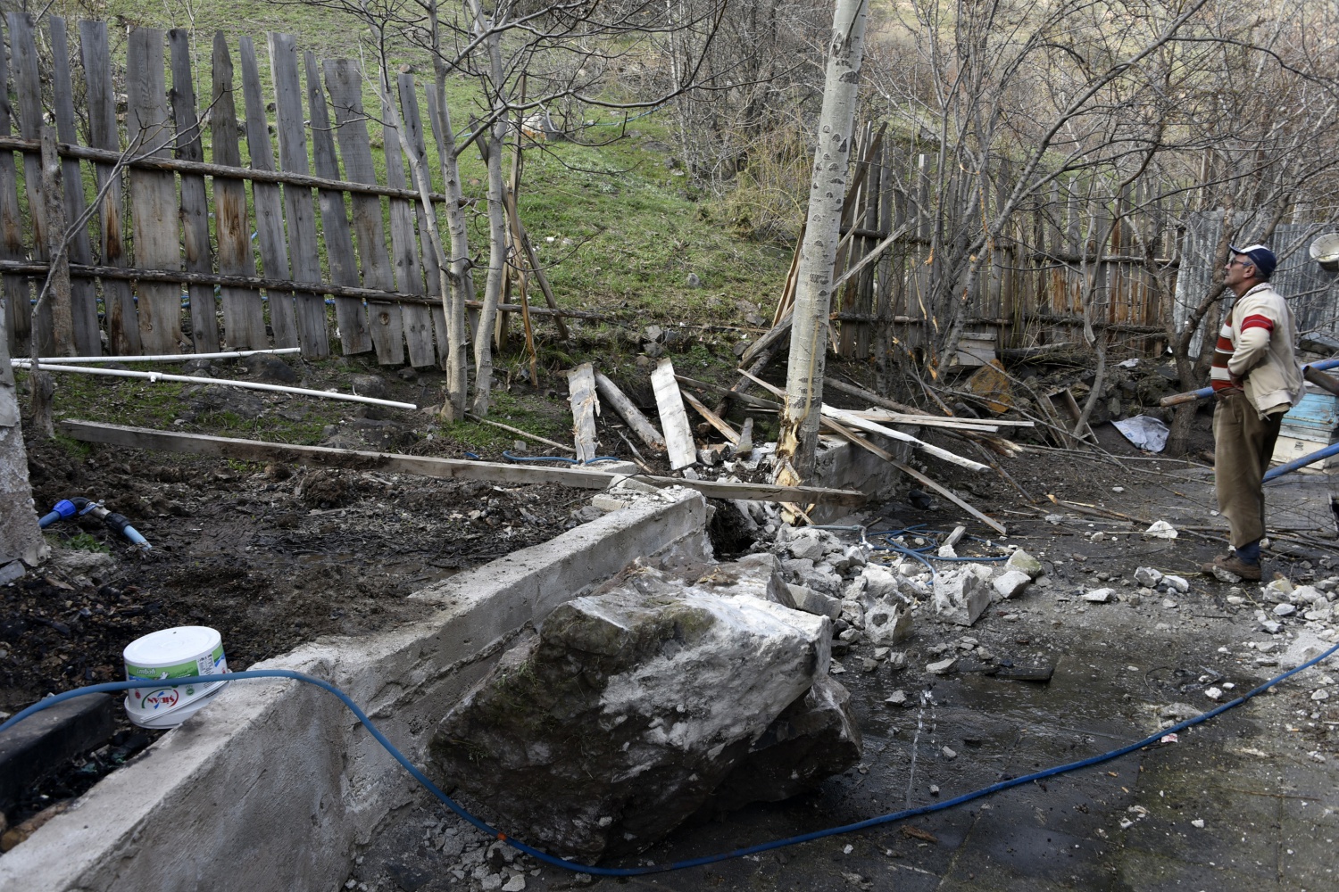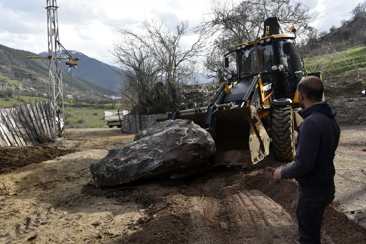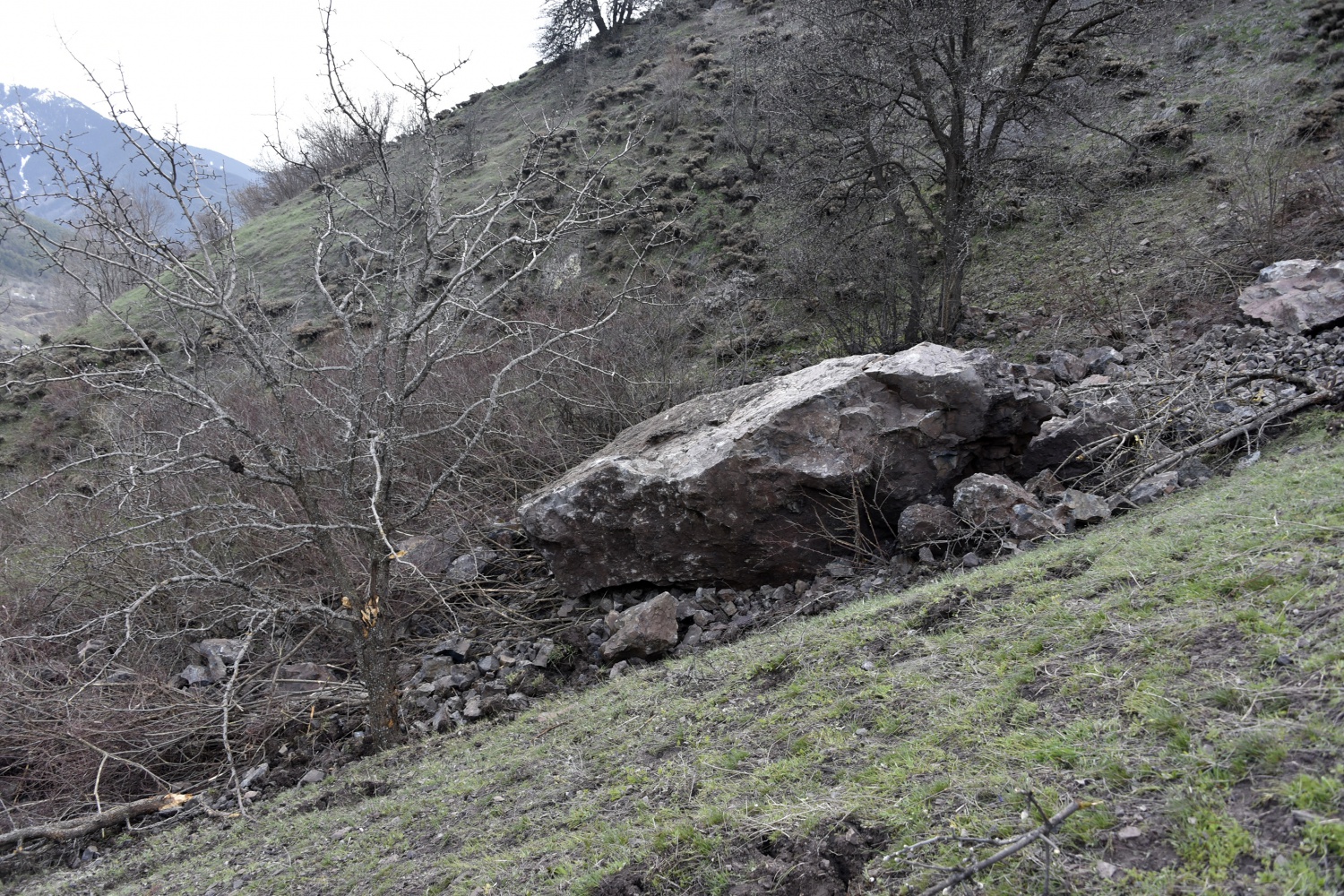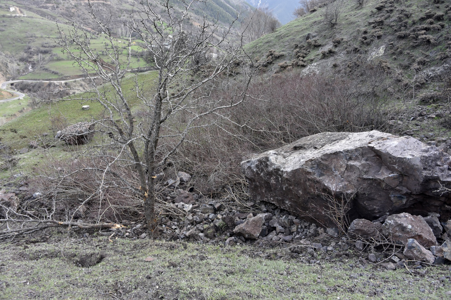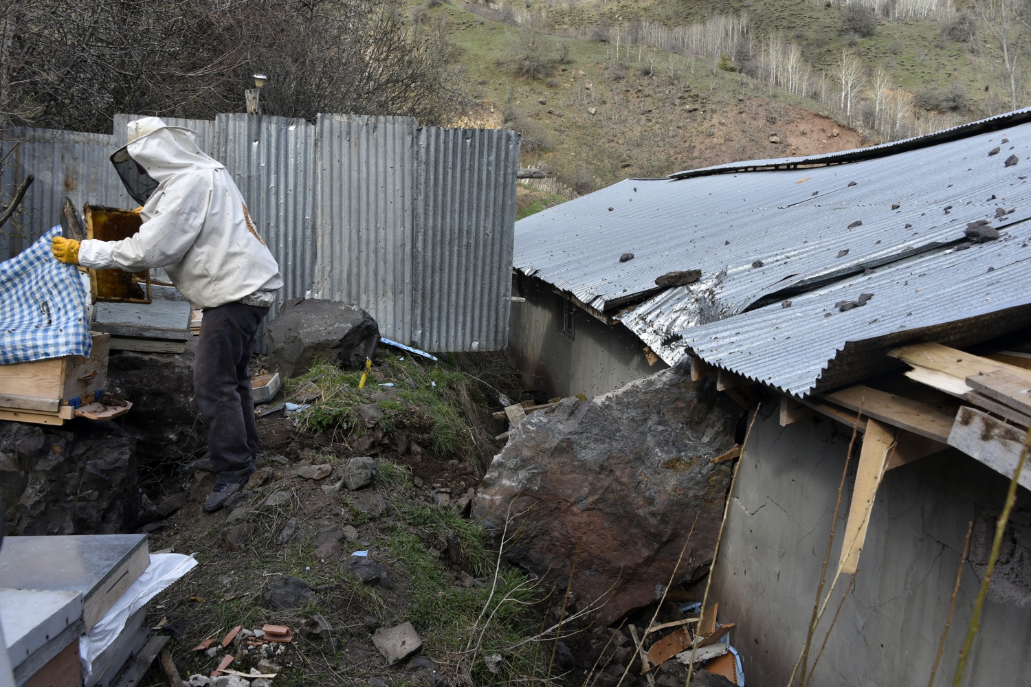 Evin kenarında bulunan arı kovanlarını da parçalayan dev kayalardan bazılarını büyük iş makinesiyle ahırın içerisinde zorla çıkaran Balki, olay anında evde bulunmamalarının büyük bir faciayı önlediğini belirterek kopan kayaların halen bölgeyi tehdit edip etmediğinin anlaşılması için yetkililerden yardım talep etti.